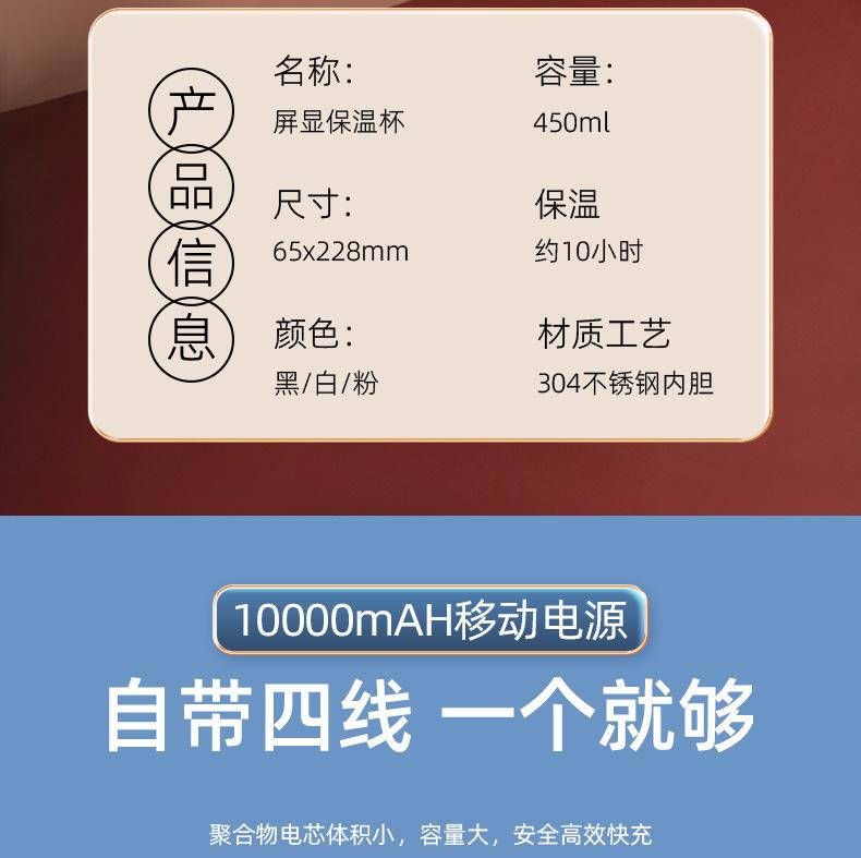 Screen display thermos cup bracket mobile power supply-white, Screen display thermos cup bracket mobile power ...