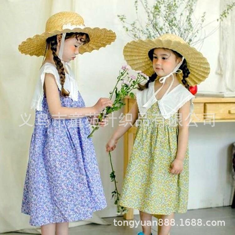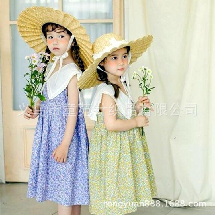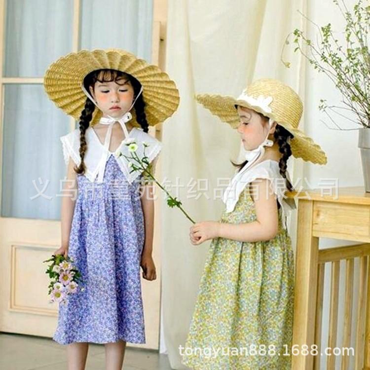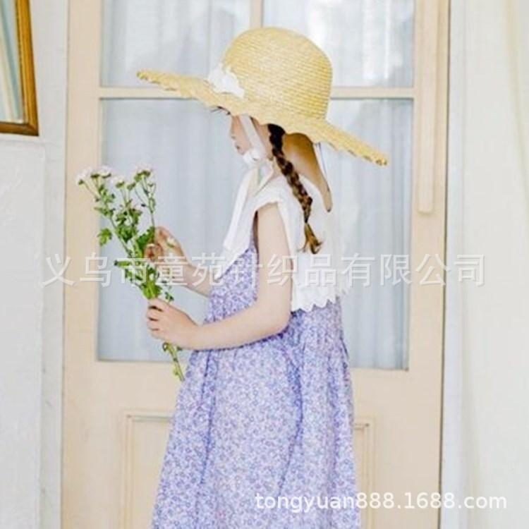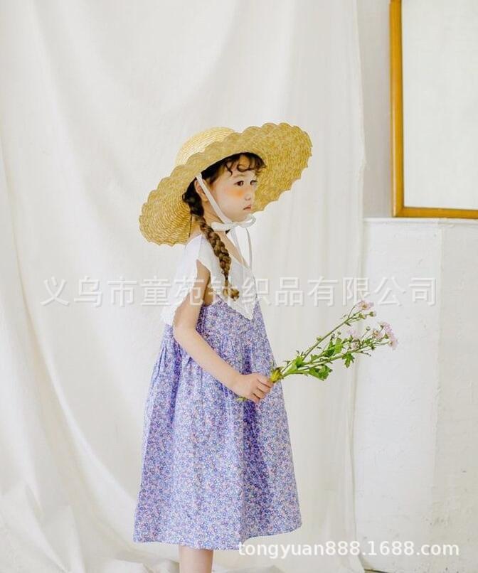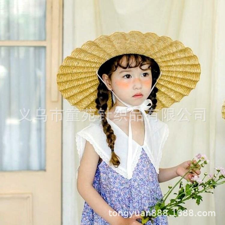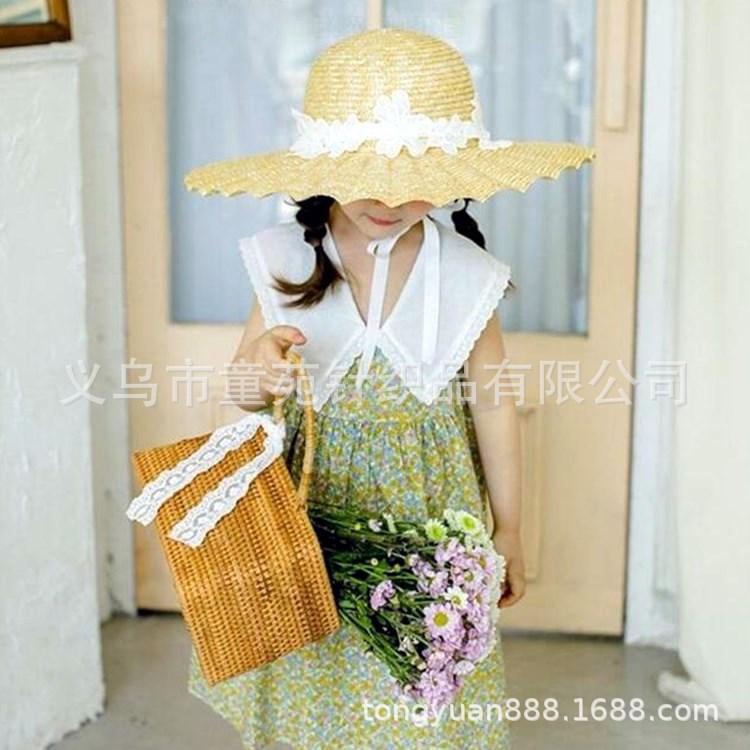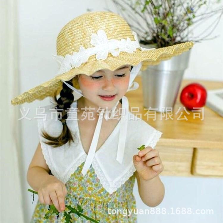 Nombre del producto: Sombrero de paja para niños coreanos, sombrero de paja de ala grande con encaje para niñas, sombrero de sol de viaje de verano con protección solar de princesa.