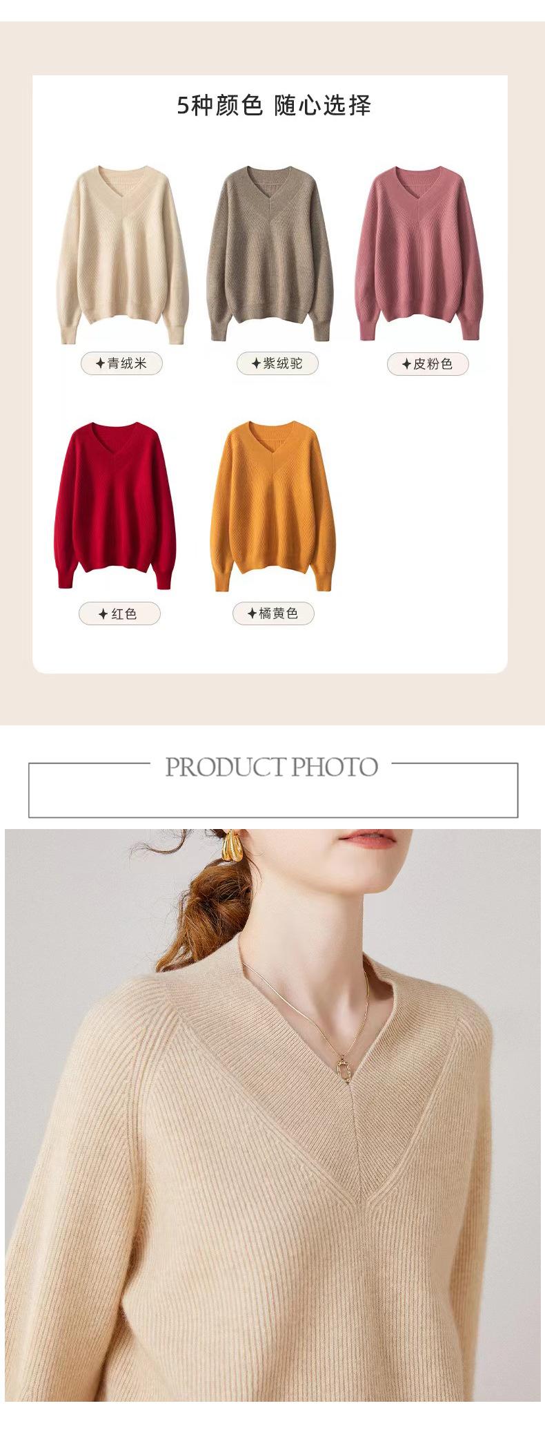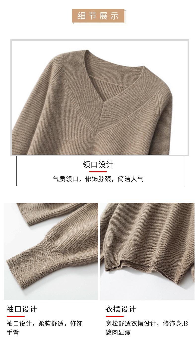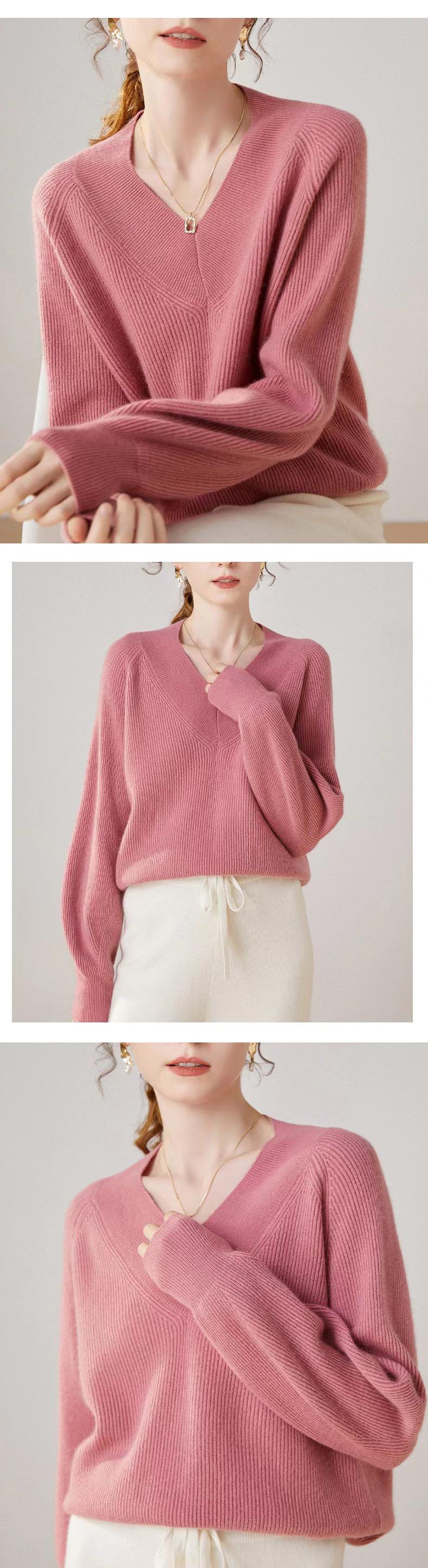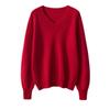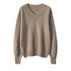 Suéter versátil de lana pura con cuello en V, cómodo y casual, suelto, de manga larga, de punto, grueso y versátil para mujer.