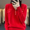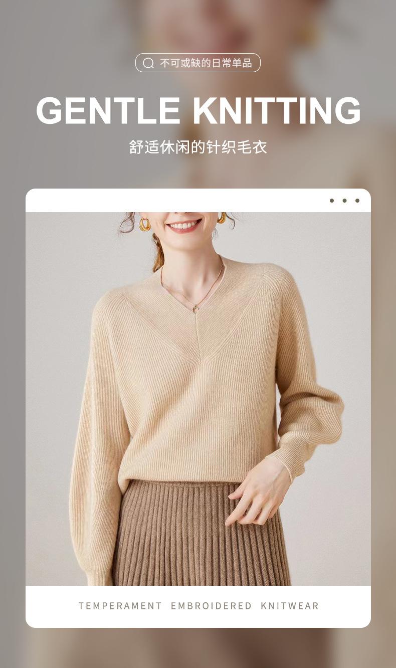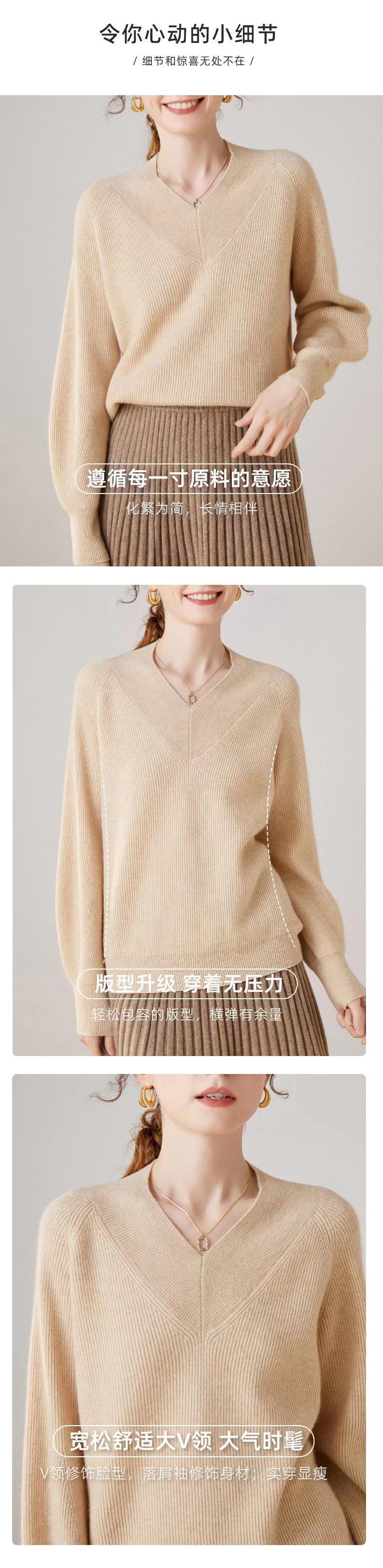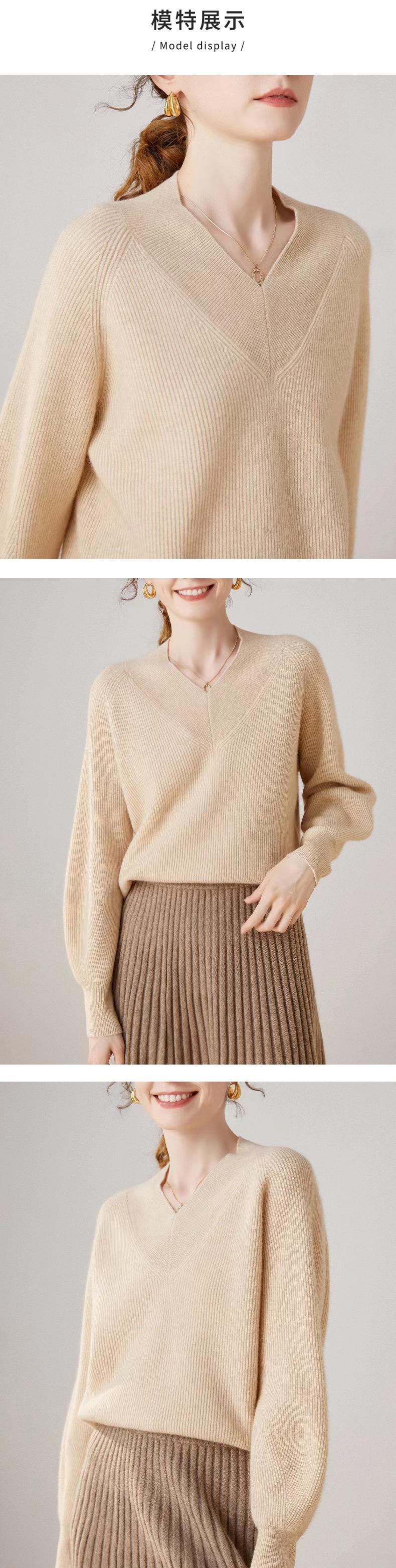 Suéter versátil de lana pura con cuello en V, cómodo y casual, suelto, de manga larga, de punto, grueso y versátil para mujer.