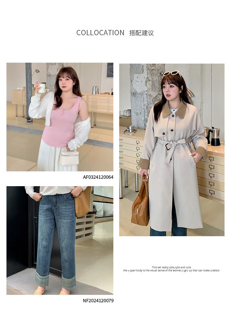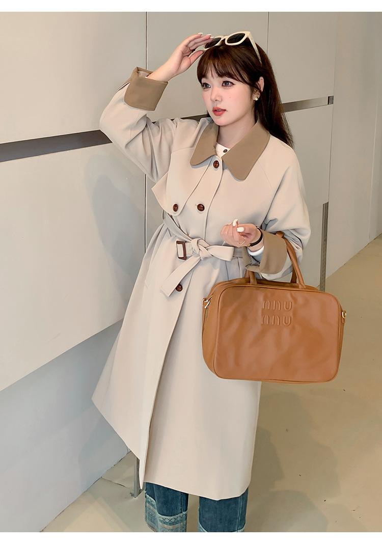 Rompevientos de Talla Grande para Mujer 2025 Primavera Nuevo mm Gordo Estilo Británico Largo Suelto Traje Abrigo 120007
