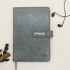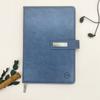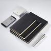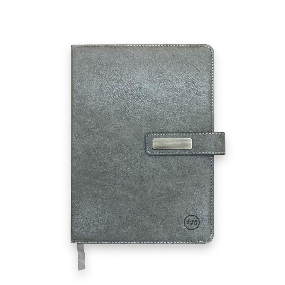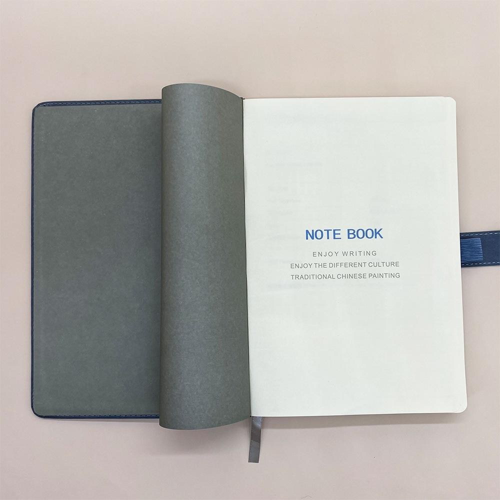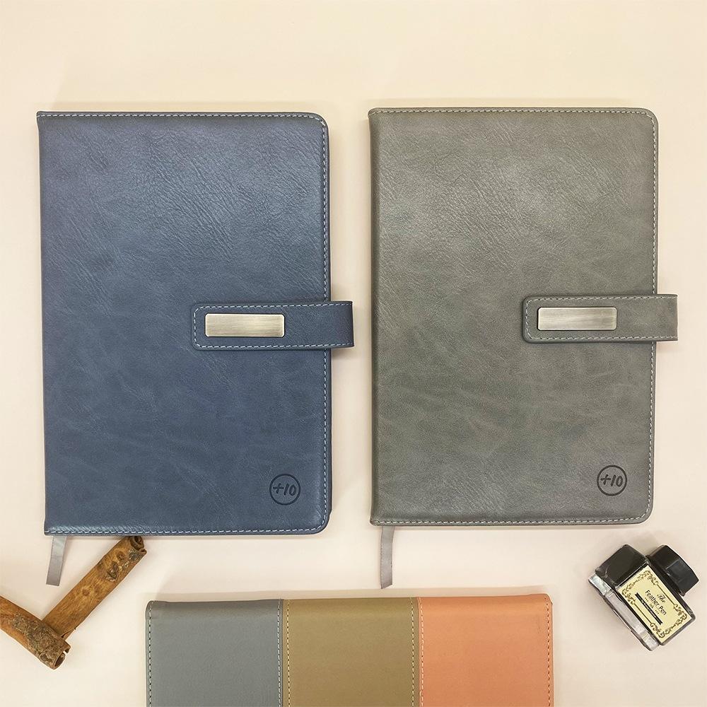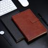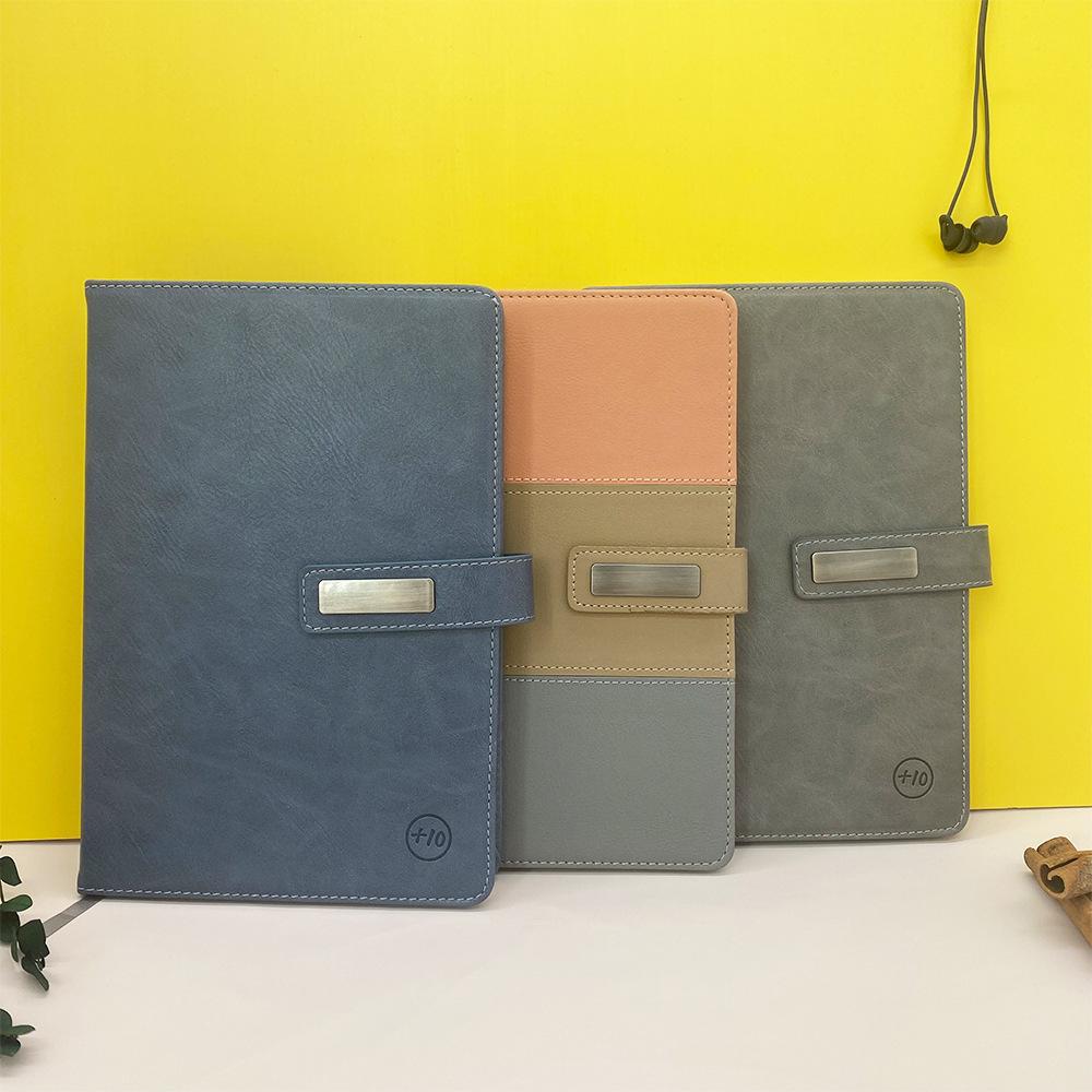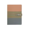 Bloc de notas A5 con hebilla de metal, fabricado por el fabricante, con logotipo de cuaderno empalmado en cuero PU de tres colores.