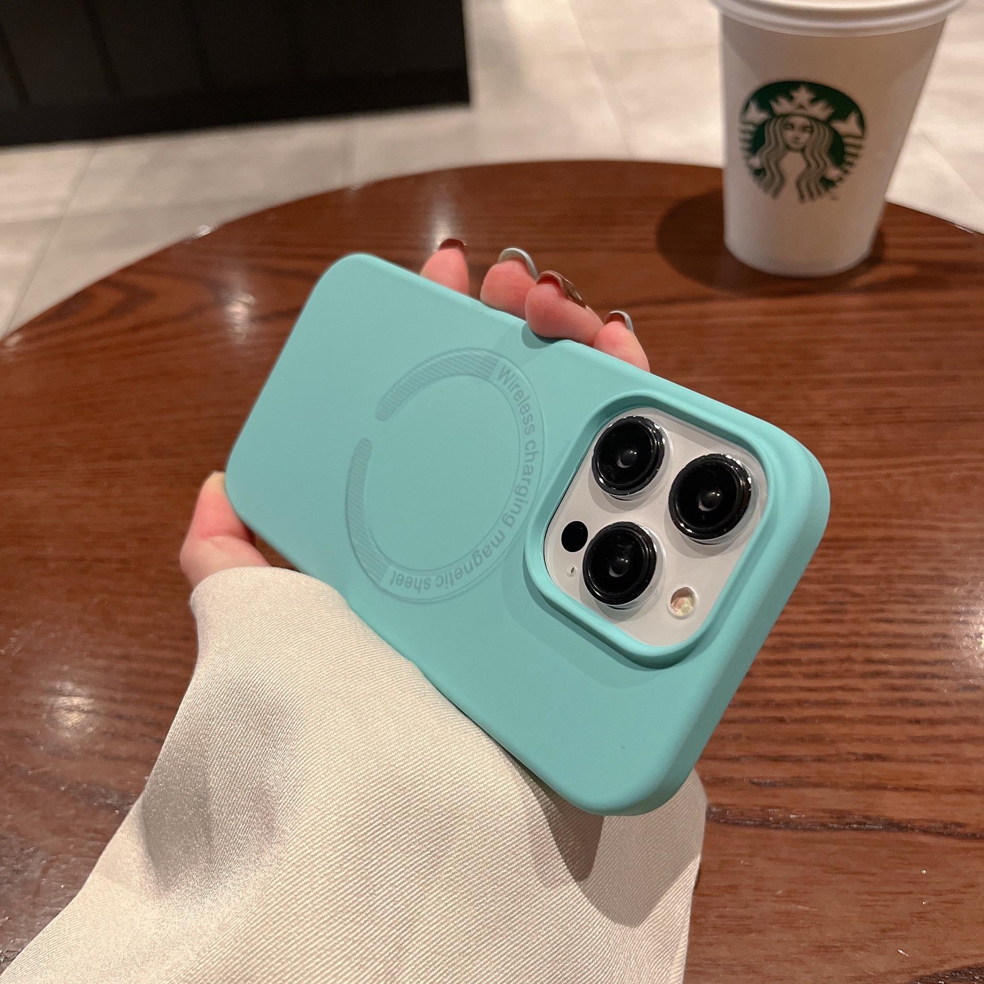 Funda de silicona líquida para iPhone 15, funda oficial Magsafe con ventosa magnética resistente a caídas para Apple 14Pro.