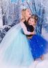 Vestido nuevo europeo y americano con pequeñas mangas voladoras y falda grande, falda de tul de malla, vestido de niña de Cenicienta congelada