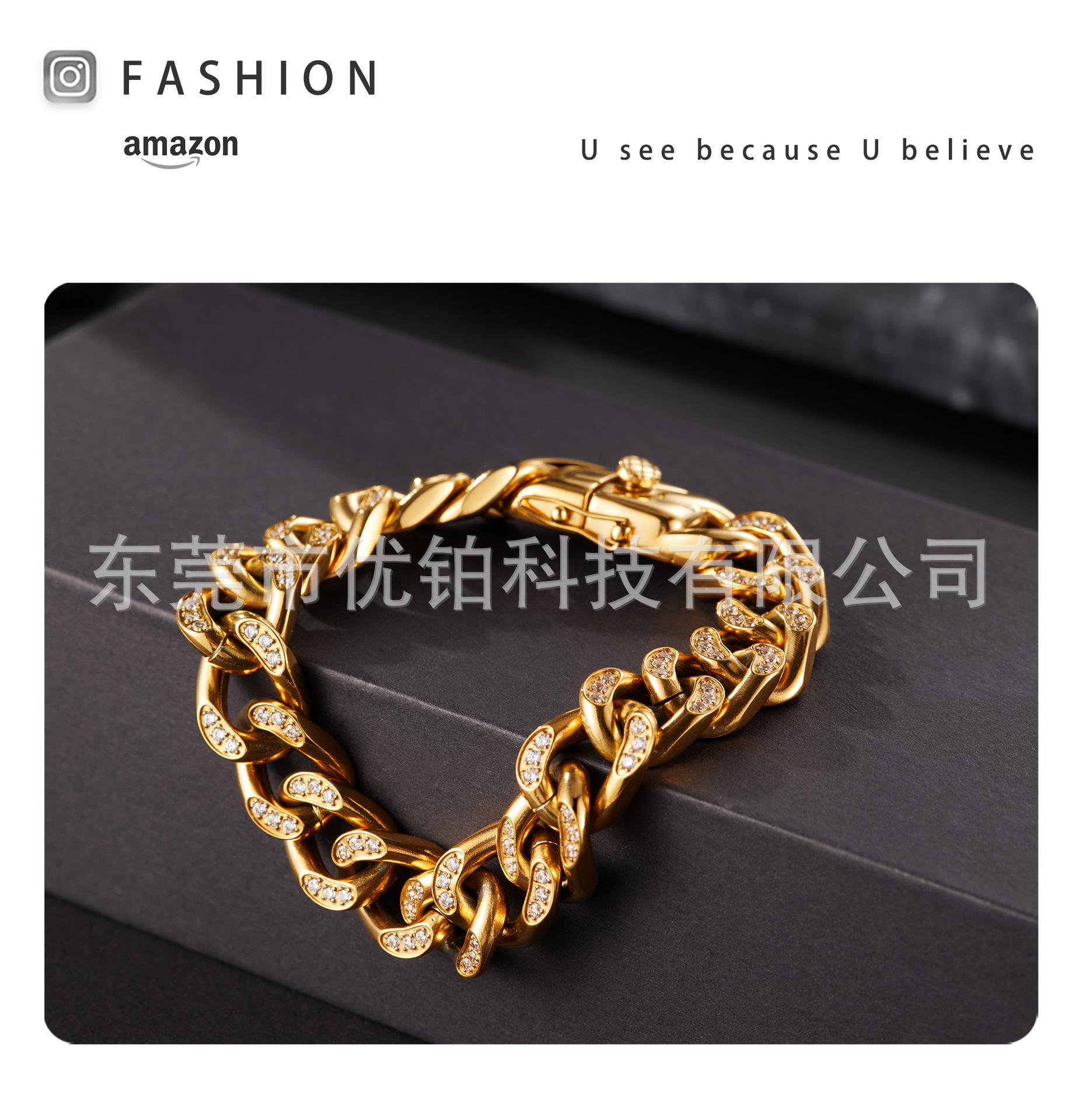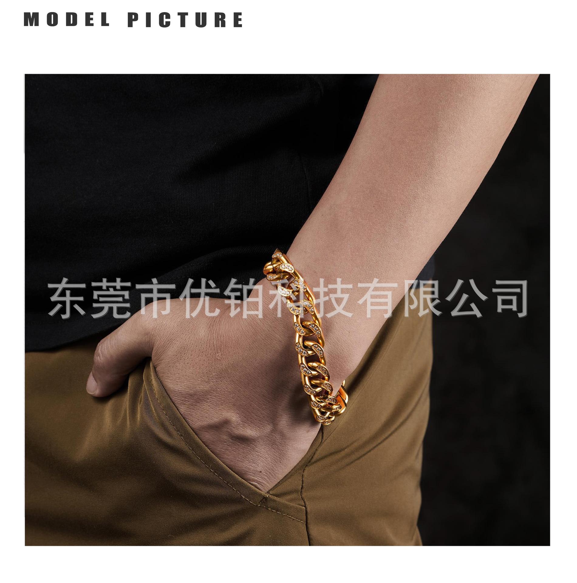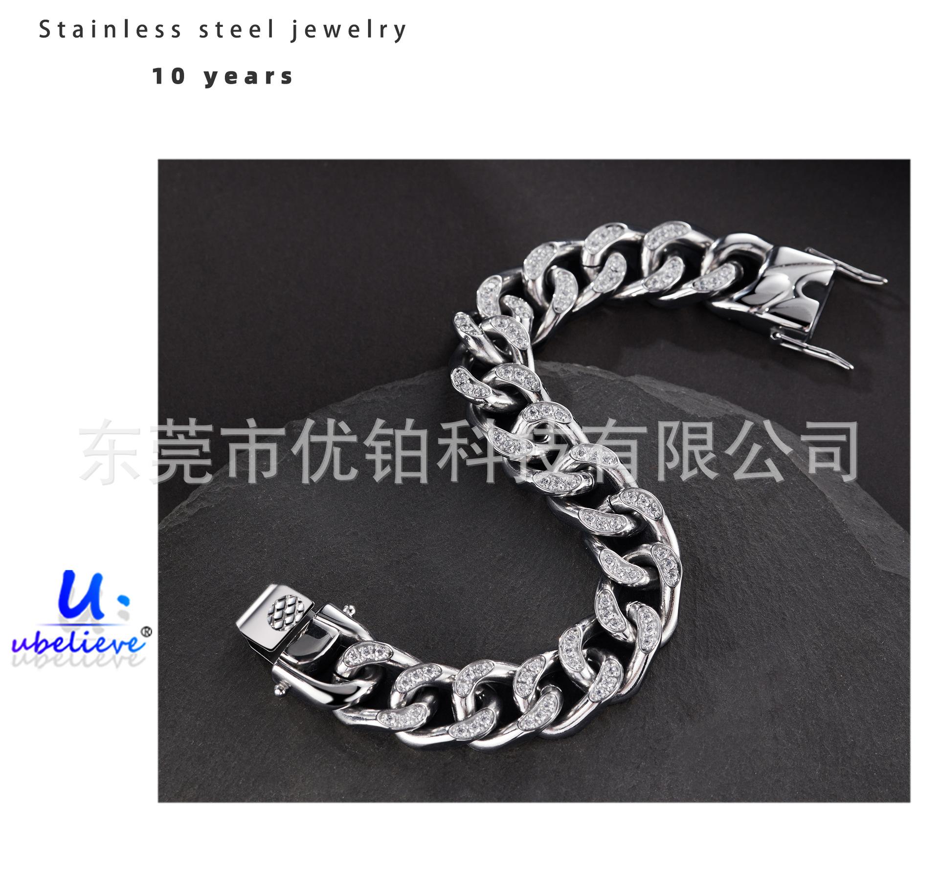 Pulsera cubana de acero inoxidable con diamantes de moda simple europea y americana transfronteriza, pulsera de diamantes de marca de moda de personalidad punk hip hop para hombres