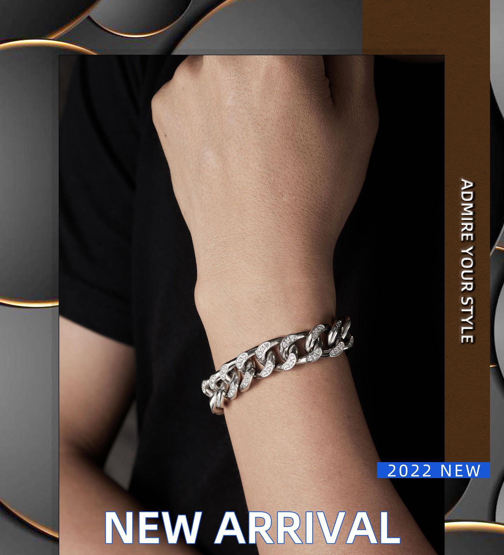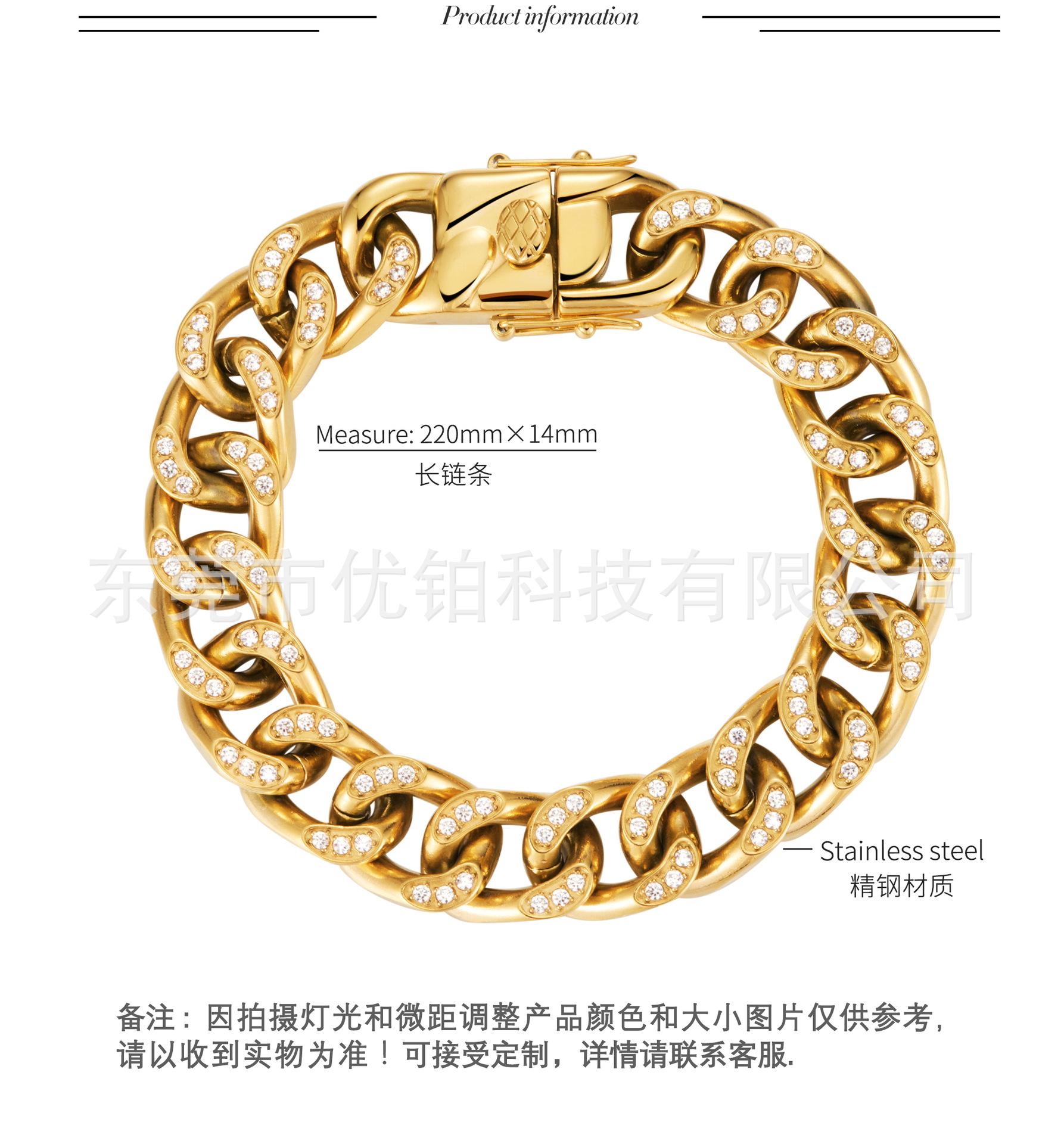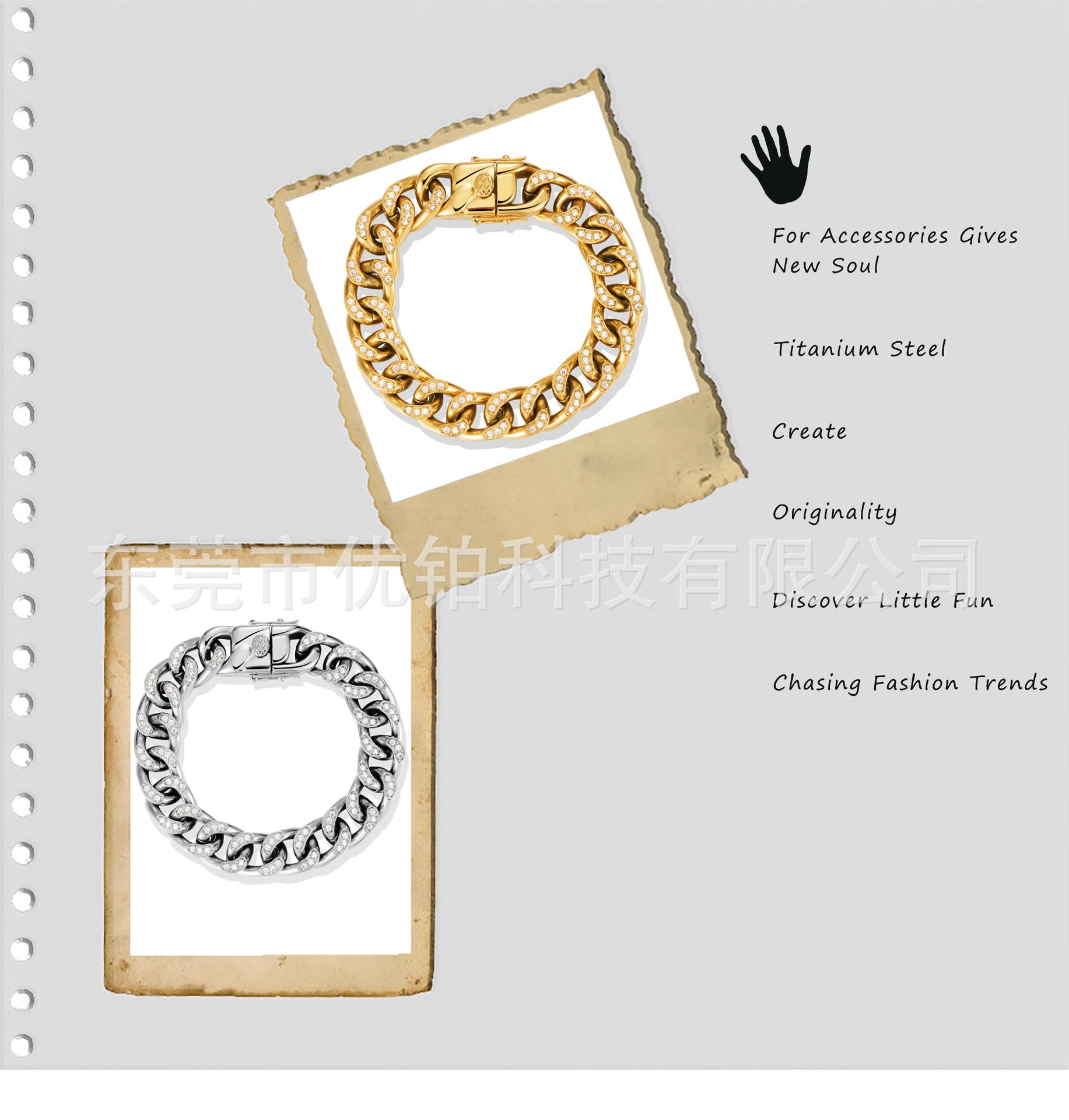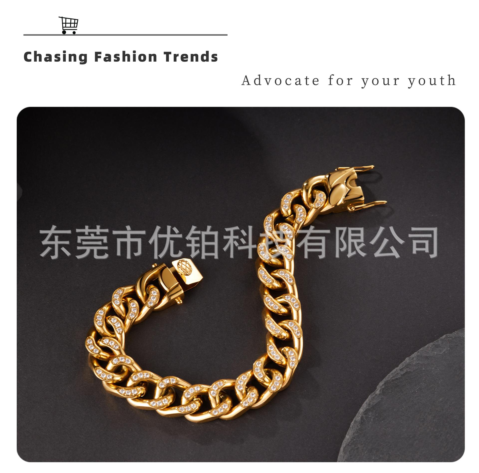 Pulsera cubana de acero inoxidable con diamantes de moda simple europea y americana transfronteriza, pulsera de diamantes de marca de moda de personalidad punk hip hop para hombres