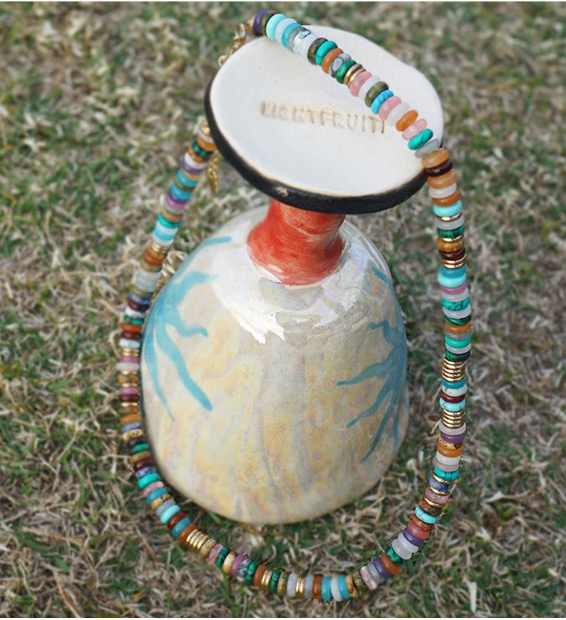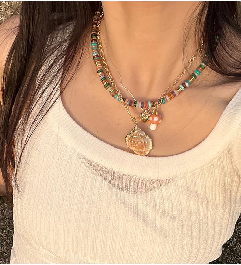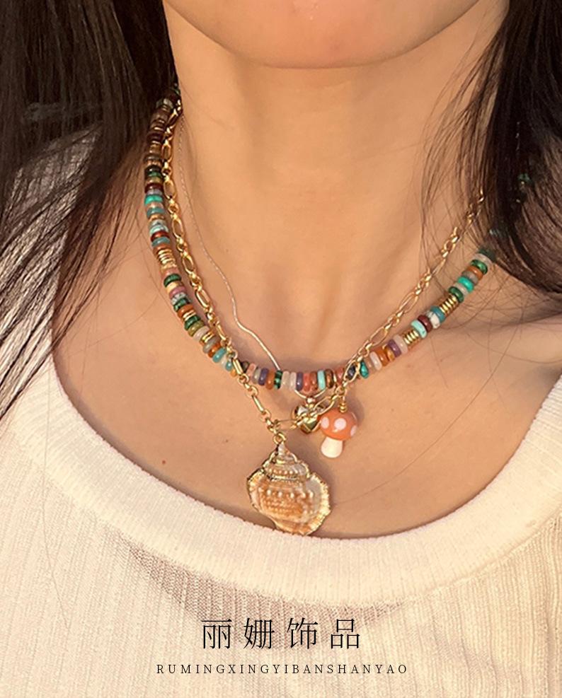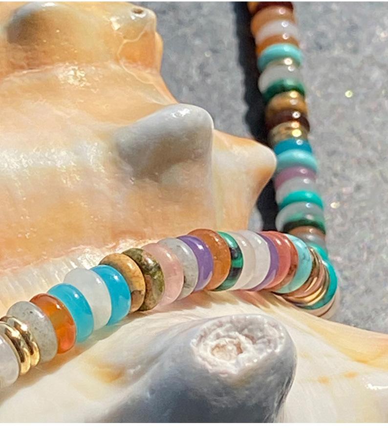 Collar de cuentas de piedra natural colorido, estilo bohemio transfronterizo europeo y americano, diseño de nicho, estilo étnico, cadena de clavícula ligera y lujosa.