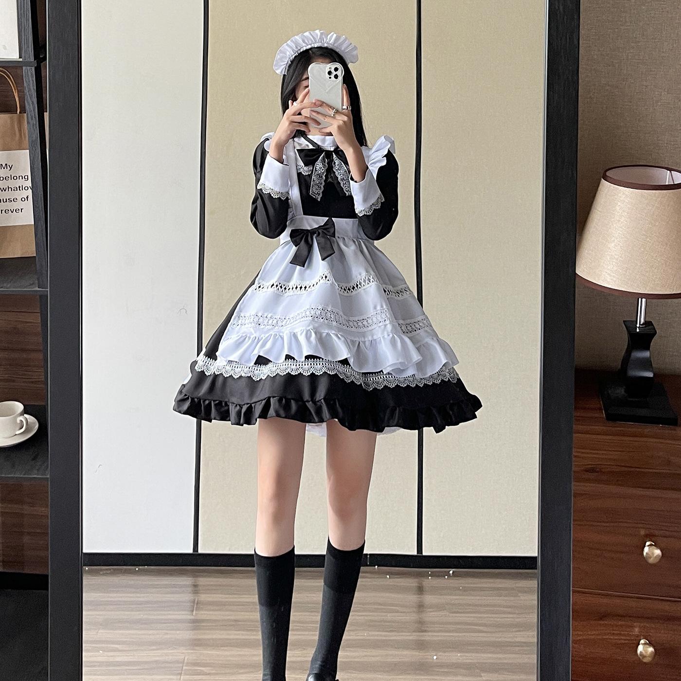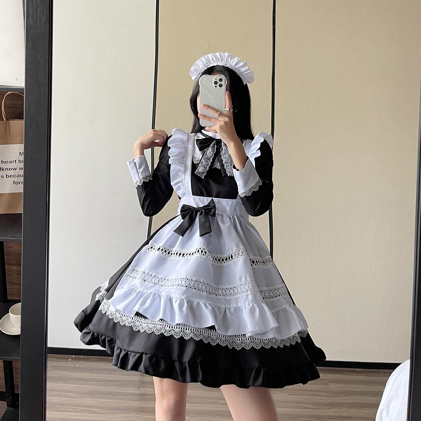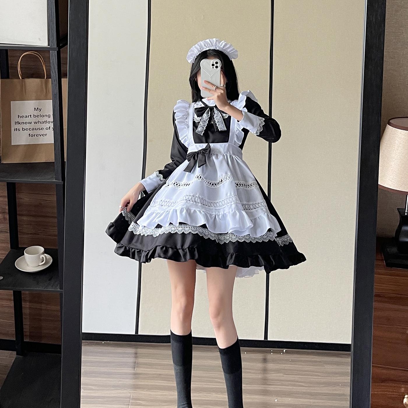 Disfraz de sirvienta de manga larga británico transfronterizo de Amazon, disfraz de actuación COSPLAY, disfraz de sirvienta de talla grande, Lolita, chica suave