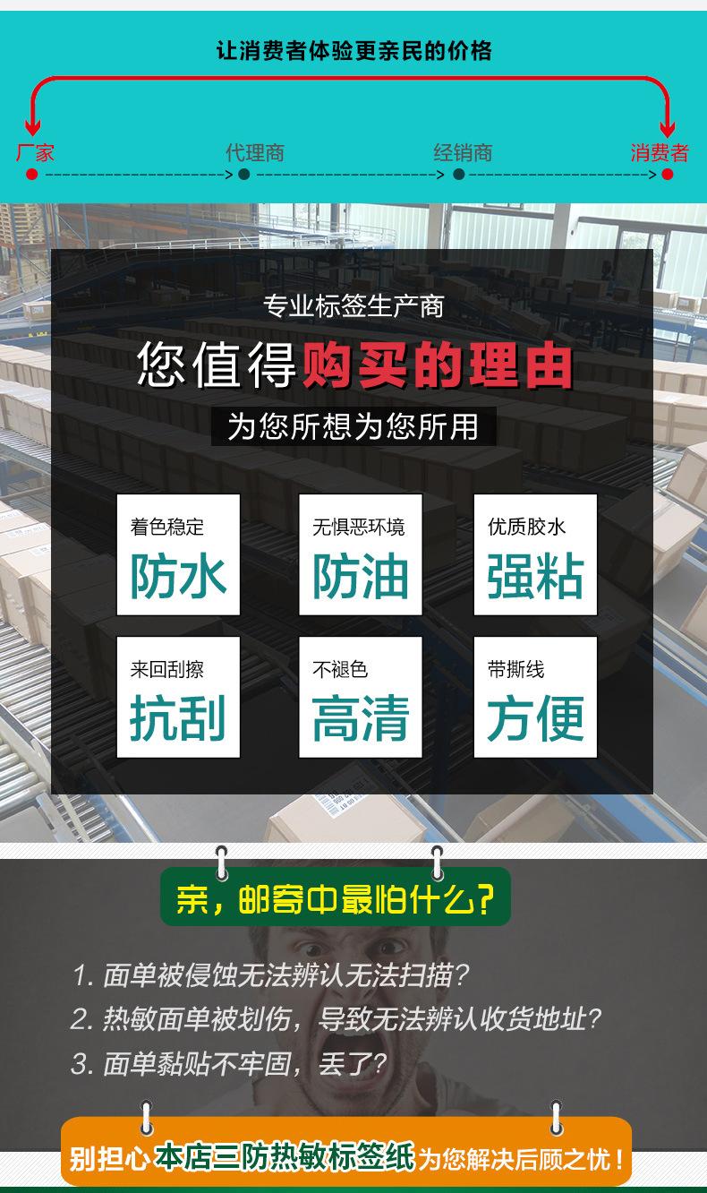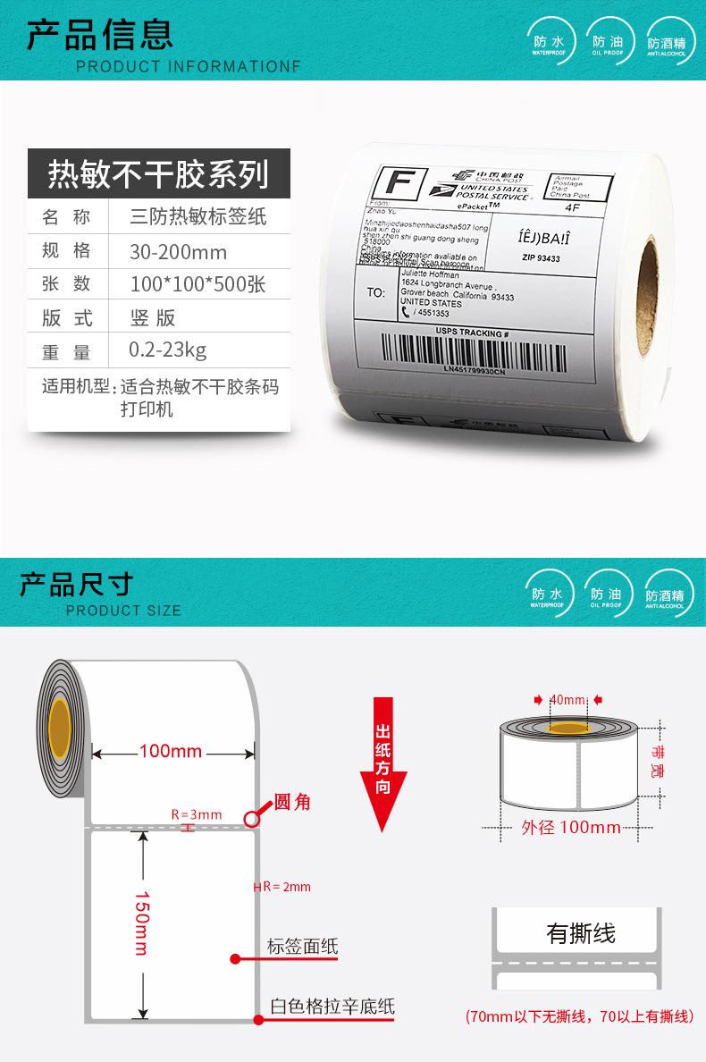 Papel de etiquetas térmicas de tres pruebas 100*160-300, adhesivo para impresora de códigos de barras, papel térmico para supermercado, precio impermeable