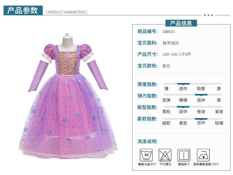 Vestido Infantil de Comercio Exterior Rapunzel Vestido de Princesa Niñas Halloween Navidad Vestido de Actuación Estilo Princesa