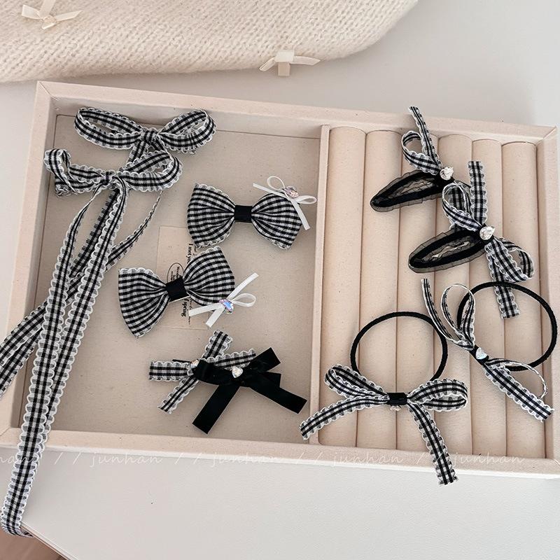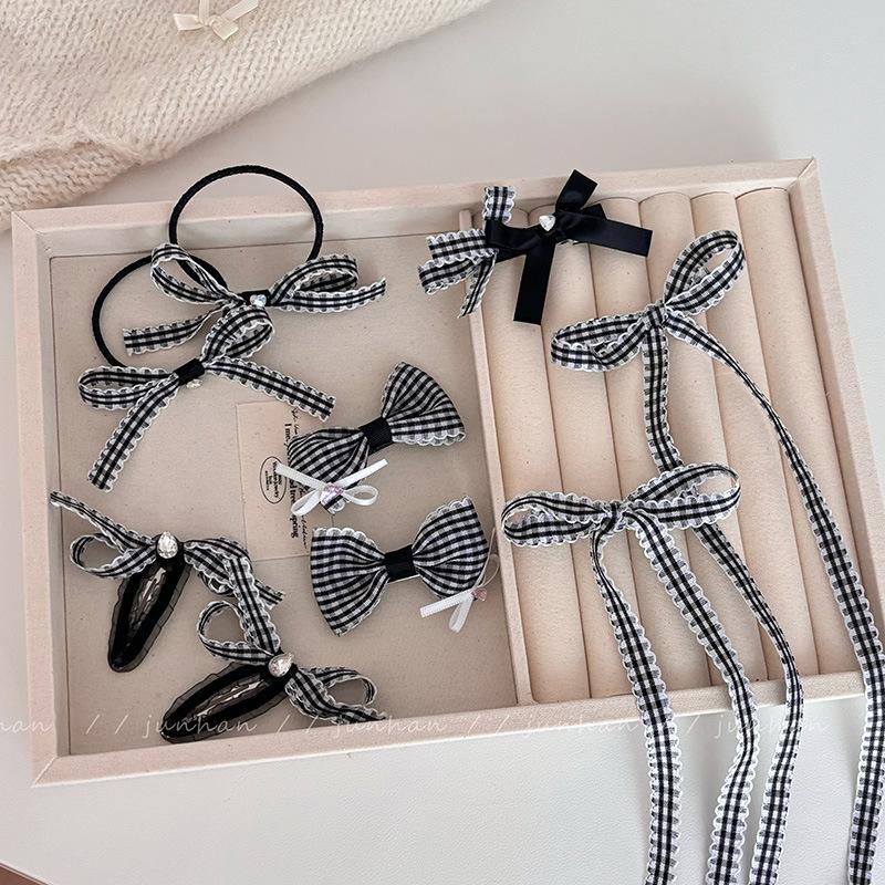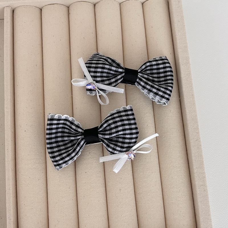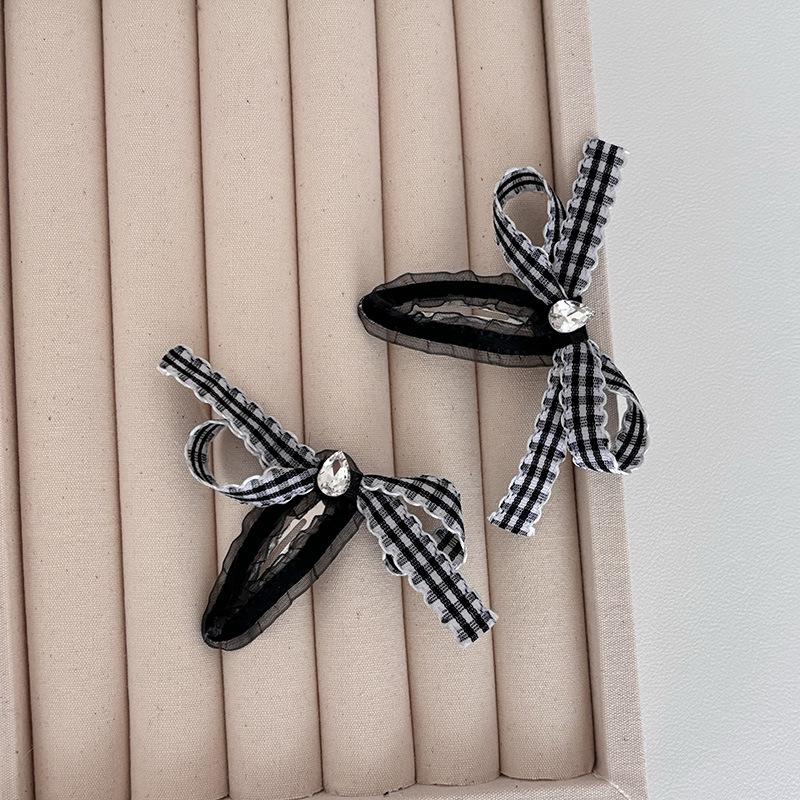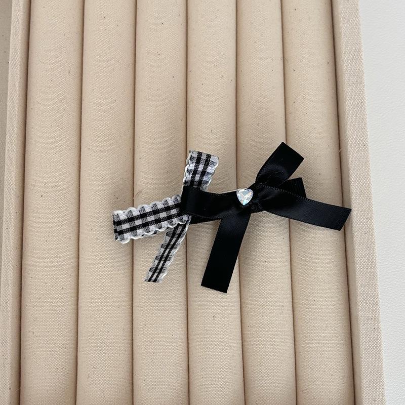 Horquilla con lazo a cuadros en blanco y negro con diamantes de imitación, horquilla para el pelo, flequillo roto, accesorios para el cabello que combinan con todo para mujeres
