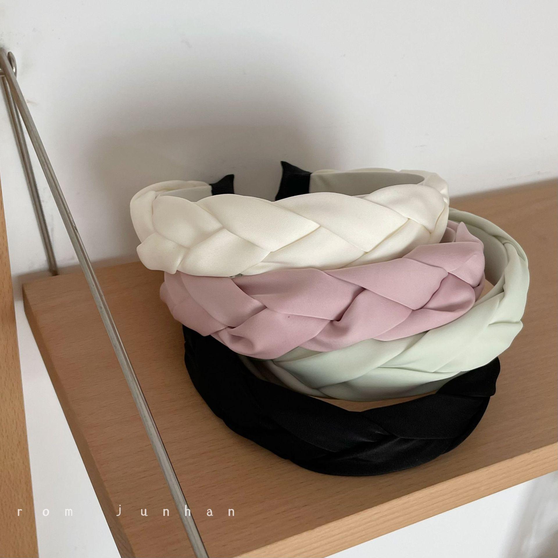 Diadema con trenza de satén trenzada estilo francés vintage para mujer, accesorio para el cabello de celebridades de Internet.