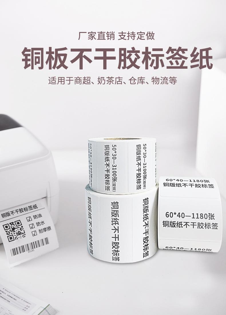 Papel estucado etiqueta autoadhesiva papel para código de barras 40*30 50 60 70 100x 180 impresora de cinta de transferencia térmica