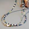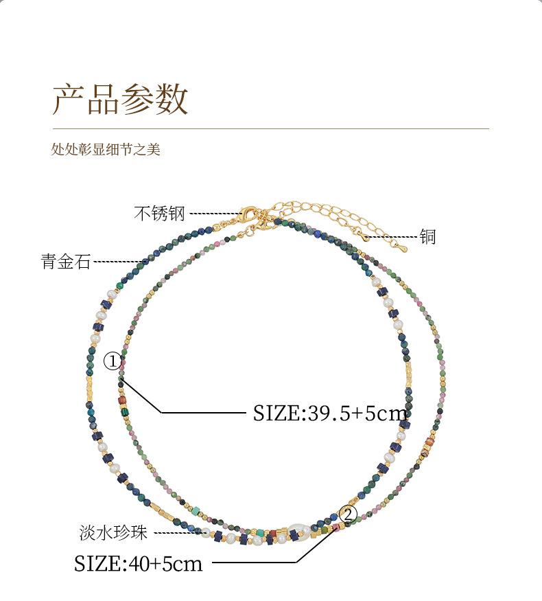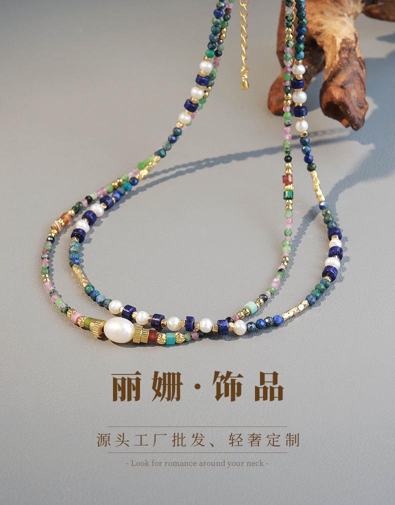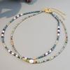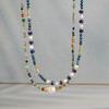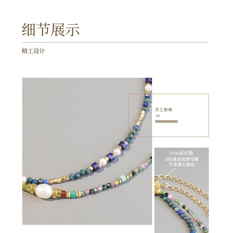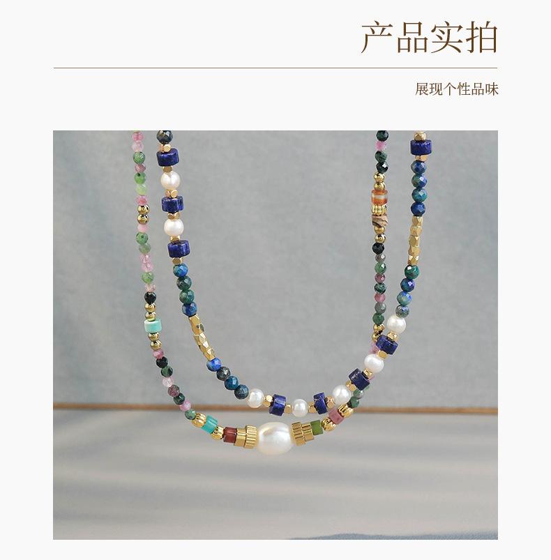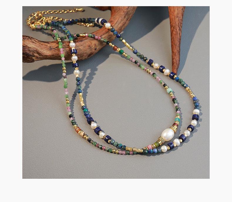 Collar de perlas de agua dulce con cuentas de piedra natural colorida de estilo bohemio, nicho ligero de lujo, temperamento, cadena de clavícula de lapislázuli
