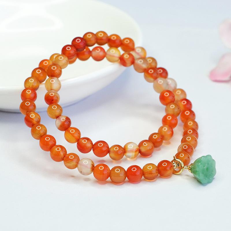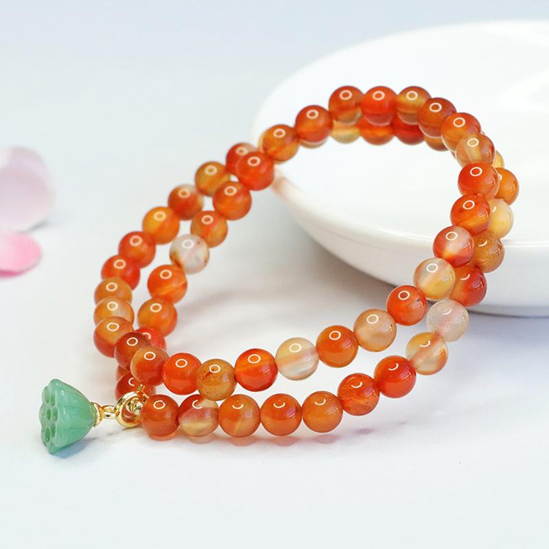 Pulsera de ágata roja natural Yuyu, pulsera de calcedonia, borla de maceta de loto, joyería nacional Tide Live MN4031206