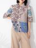Camisa Estampada con Solapa Plisada de Moda para Mujer 2023 Nuevo Sentido del Diseño Cárdigan de Siete Mangas con Botonadura Sencilla Top de Talla Grande