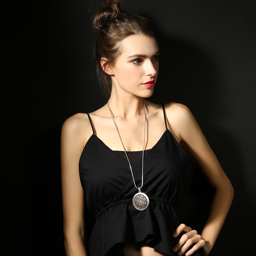 Cadena de lana de aleación larga para mujer, estilo europeo y americano, fresca y exquisita, con patrón de diamante hueco, redonda, de Amazon Explosions