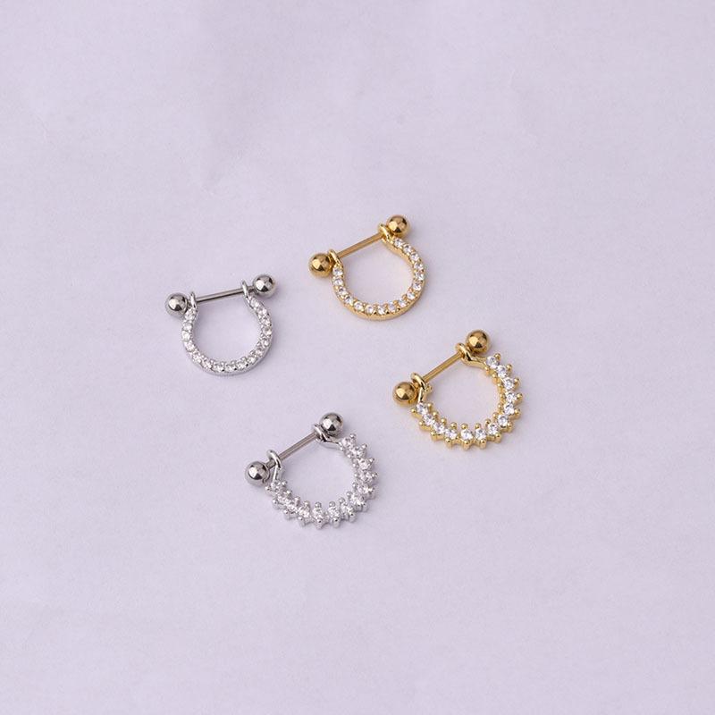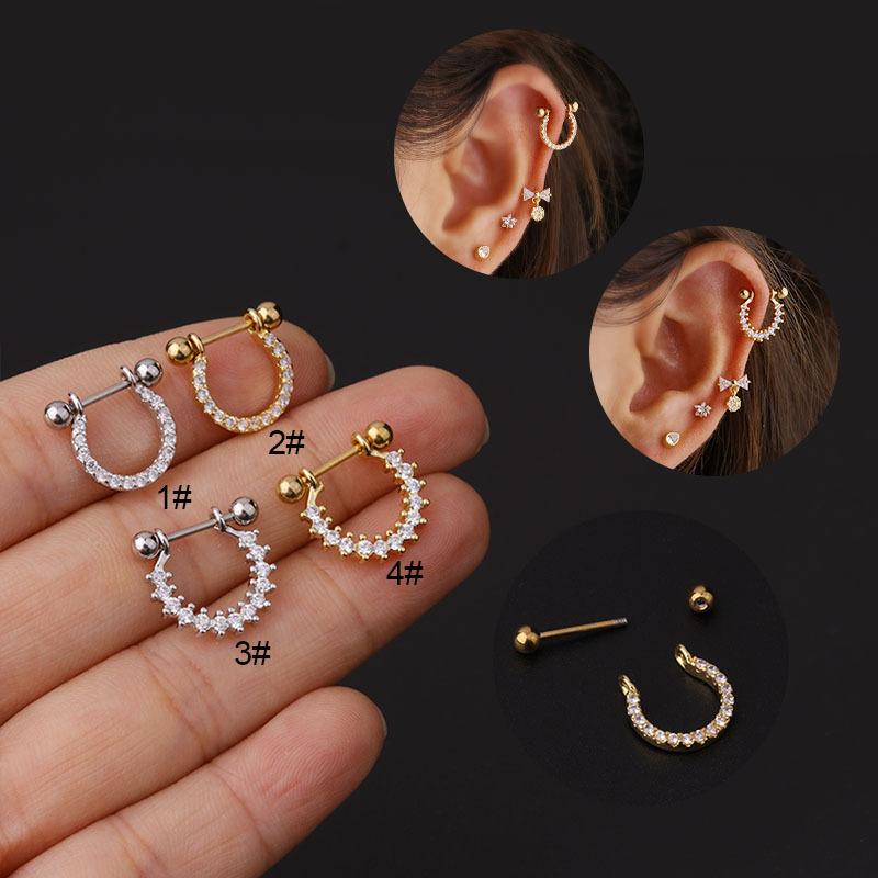 nombre del producto | Pendientes de comercio exterior europeos y americanos con microincrustaciones de circonitas, varilla fina de acero inoxidable de 20 g, bola giratoria, hueso de oreja, perforación creativa para uñas. |