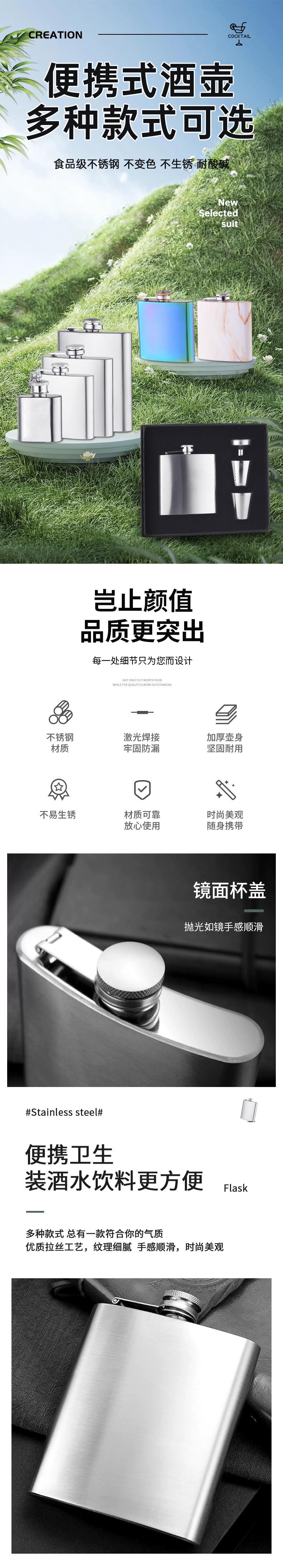 Set de regalo de frasco de acero inoxidable con embudo para copa de vino, cuatro piezas, frasco pequeño, regalo de alta gama, botella de vino de metal personalizada.