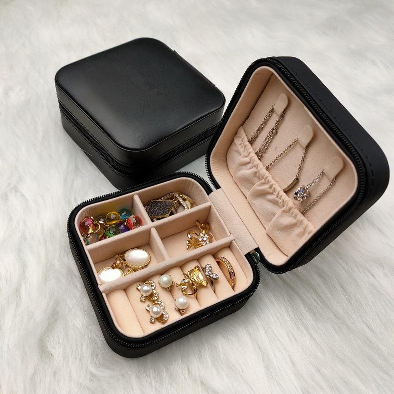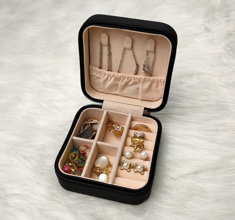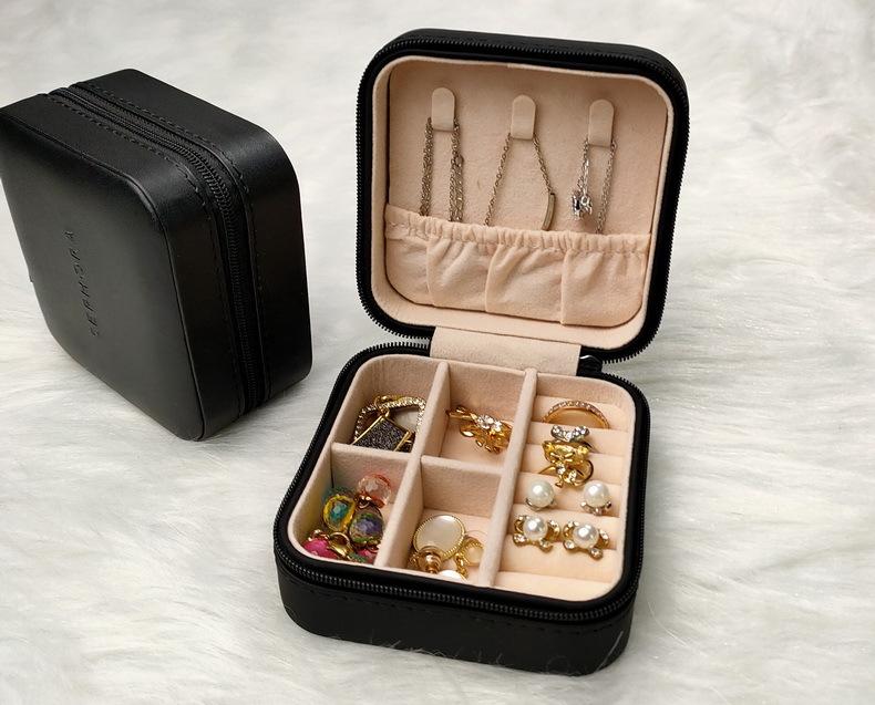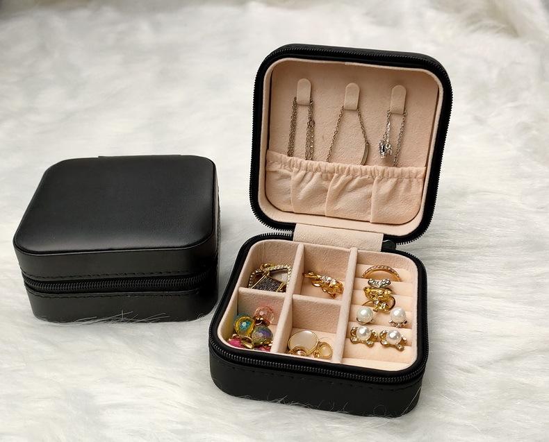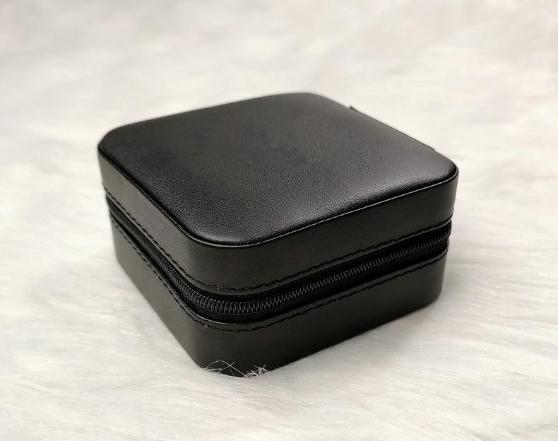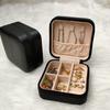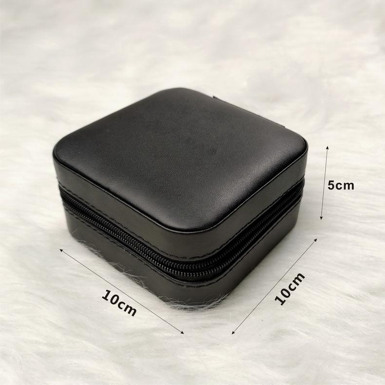 Mini Joyero Aretes Anillo Collar Cuero Negro Caja de Almacenamiento de Joyas Viaje Bolsa Pequeña para Joyas Portátil
