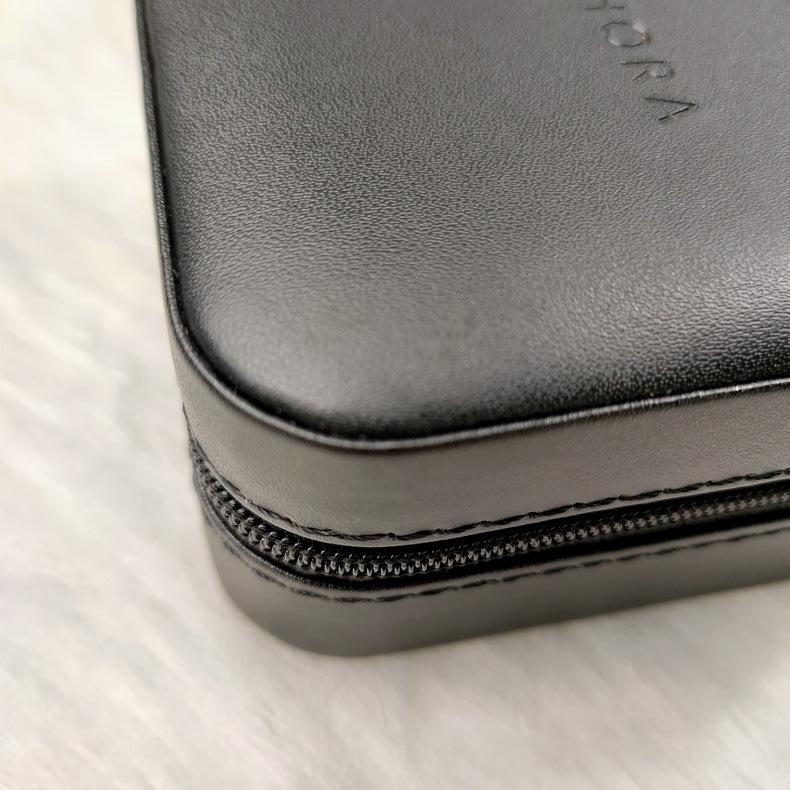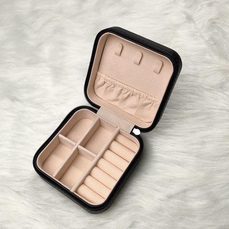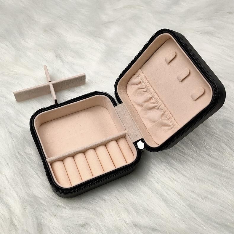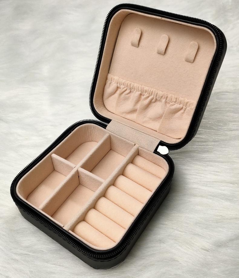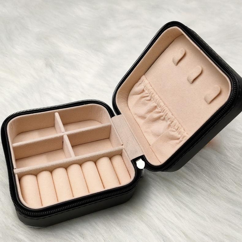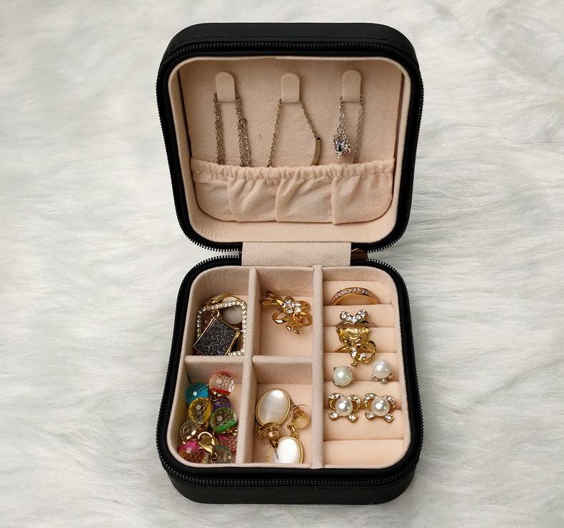 Mini Joyero Aretes Anillo Collar Cuero Negro Caja de Almacenamiento de Joyas Viaje Bolsa Pequeña para Joyas Portátil