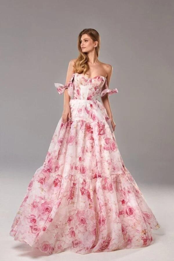 Vestido de noche elegante y largo de organza con hombros descubiertos para mujer, estilo europeo y americano, 2025