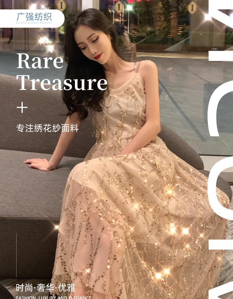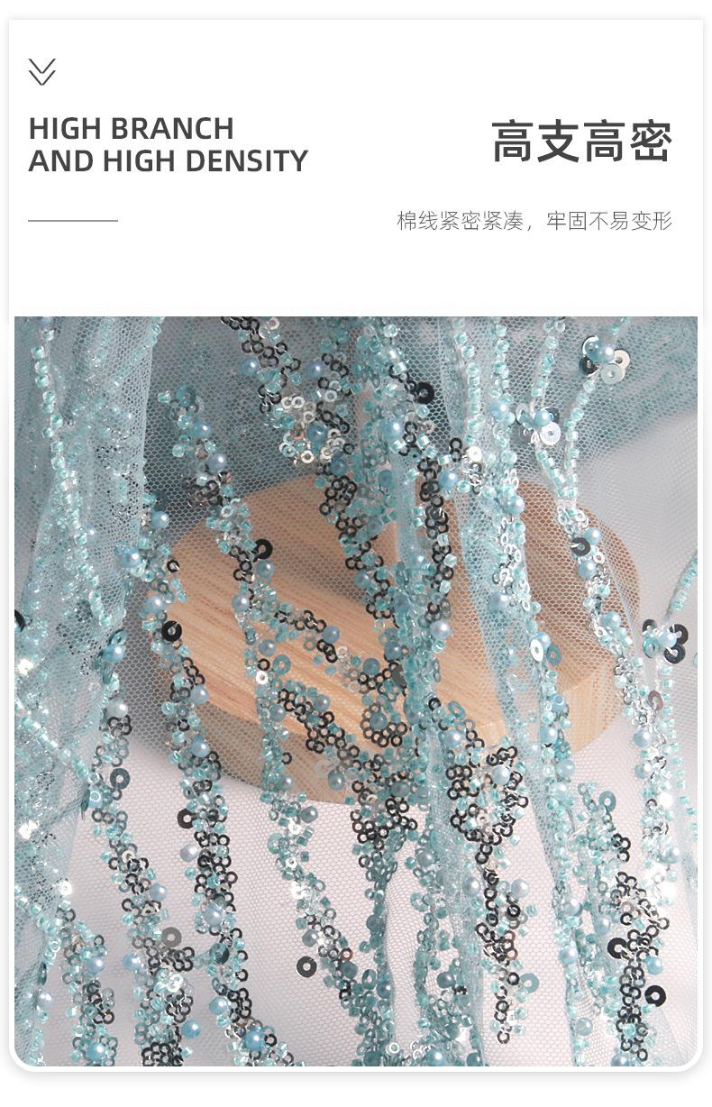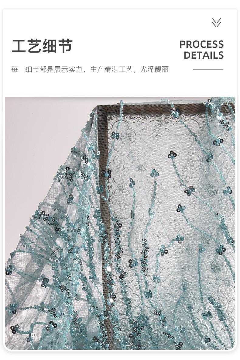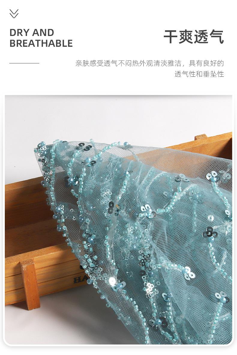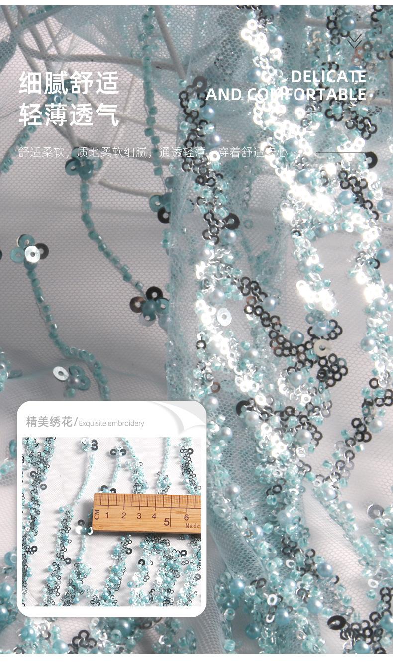 Los fabricantes pueden establecer el nuevo bordado de tubo de cuentas de malla lentejuelas azul claro tela bordada vestido de moda tela para vestido