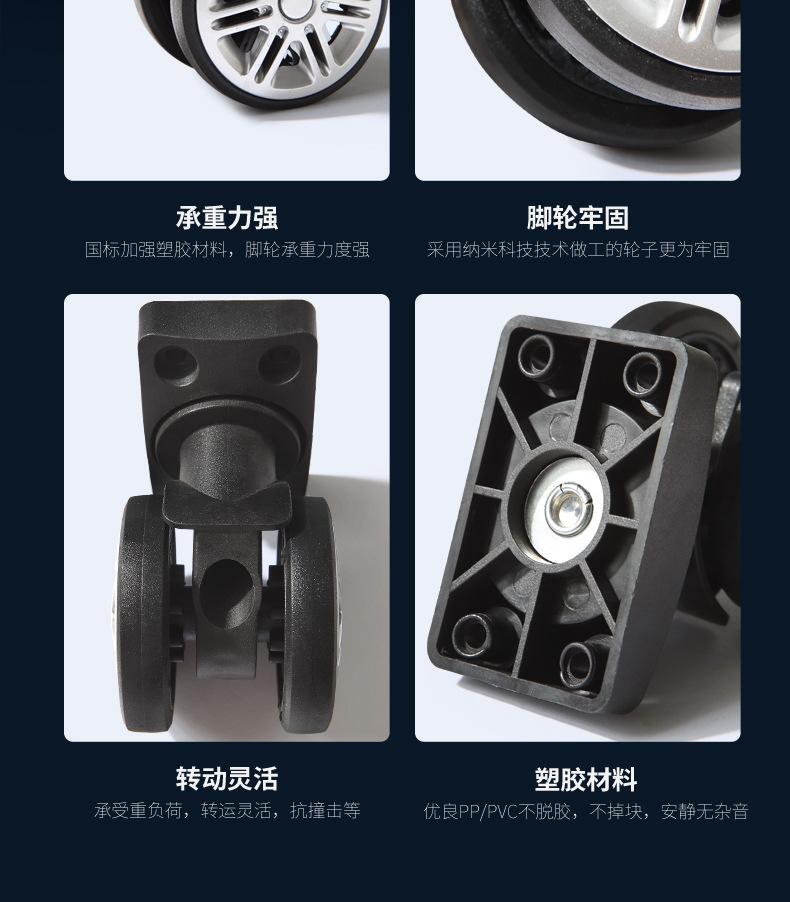 Maleta de plástico universal con ruedas direccionales, silenciosa, resistente al desgaste y con amortiguación de impactos, con rotación de 360 grados