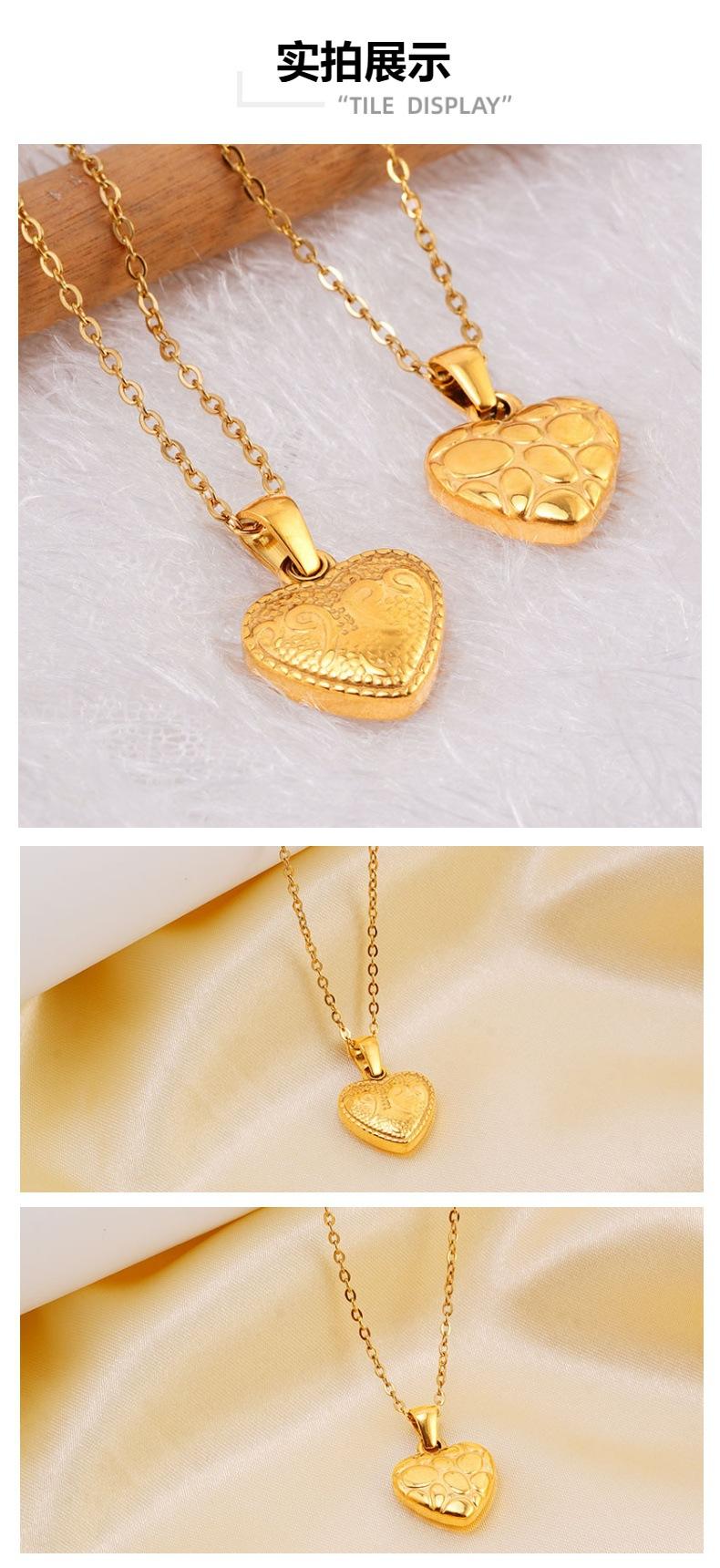Collar Europeo y Americano Transfronterizo de Acero Inoxidable con Corazón, Colgante con Forma de Corazón de Acero al Titanio Chapado en Oro de 18K a la Moda, Versátil Collar de Cadena para la Clavícula
