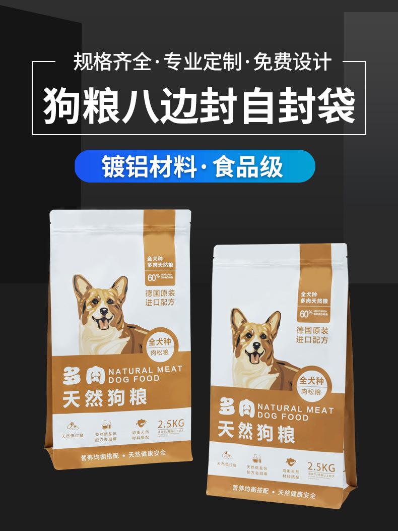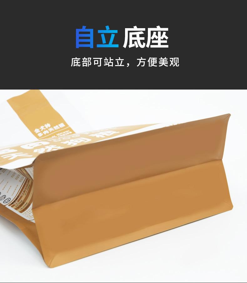 Bolsa de embalaje personalizada con sellado de ocho lados para comida para gatos, perros y snacks, gruesa y autoportante, de aluminio.