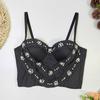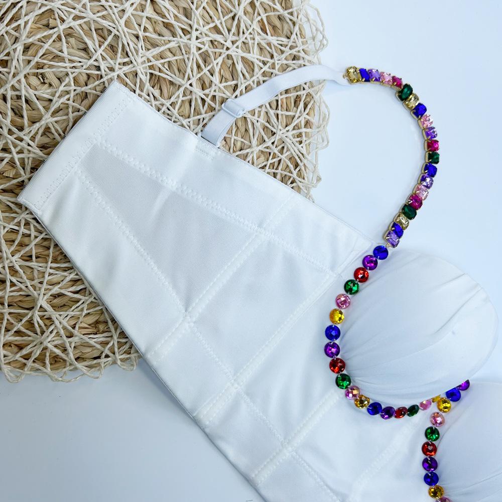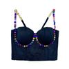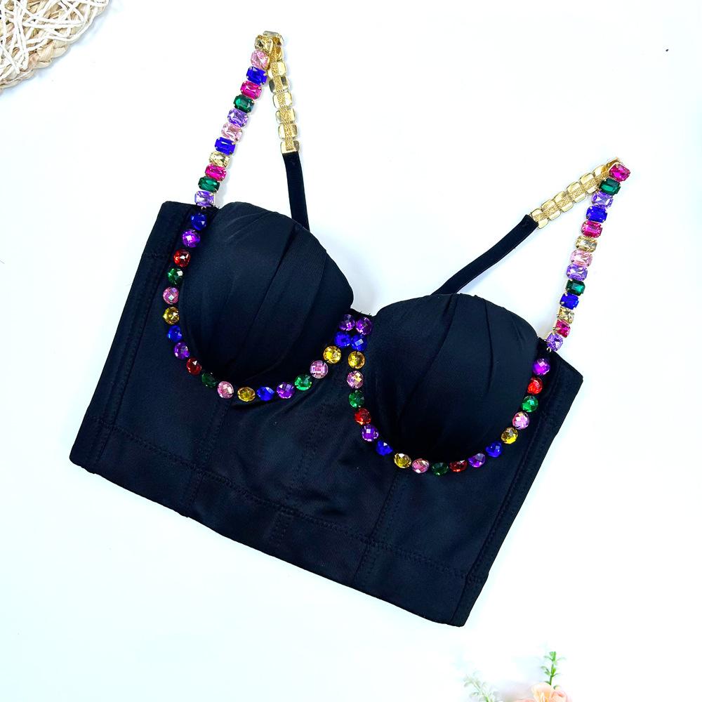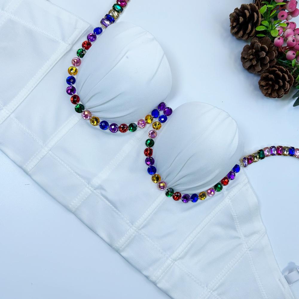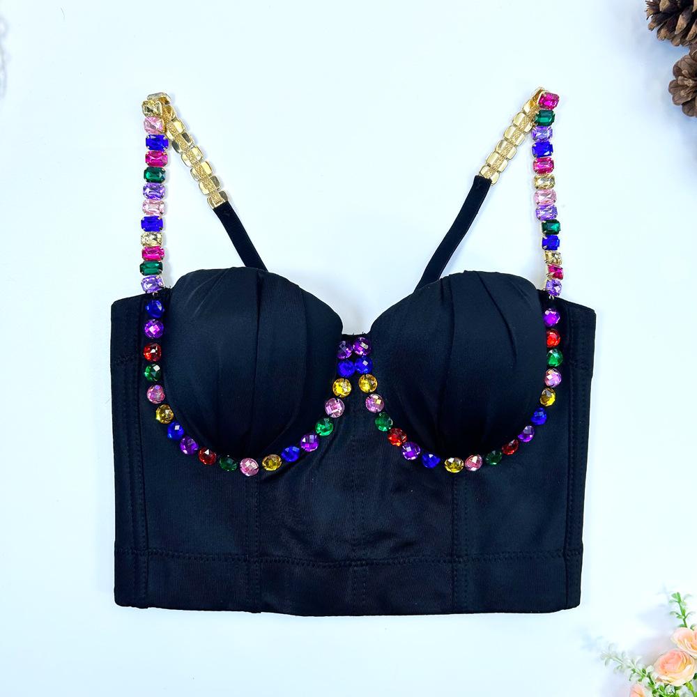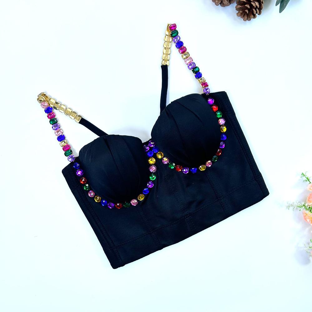 Corsé con aro de acero y parte superior de tubo con cuentas de gemas de colores, estilo extranjero europeo y americano, con diseño de espiga, ropa exterior y interior, con tirantes pequeños.