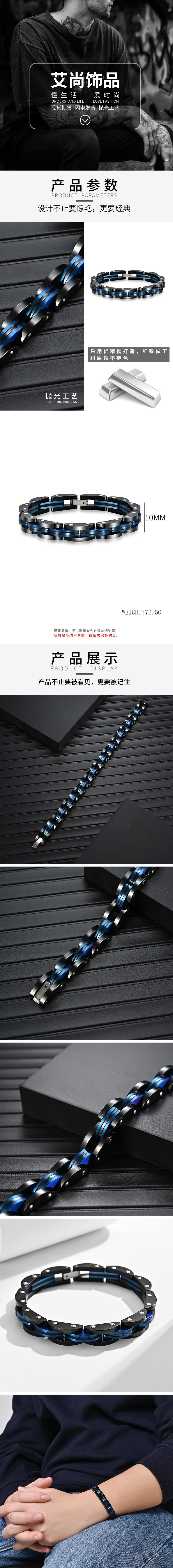 Compra Pulsera creativa de acero inoxidable nueva y de moda, venta al por mayor, personalidad para hombre, pulsera de acero de titanio azul y negro de dos colores al por mayor en Joom.pro