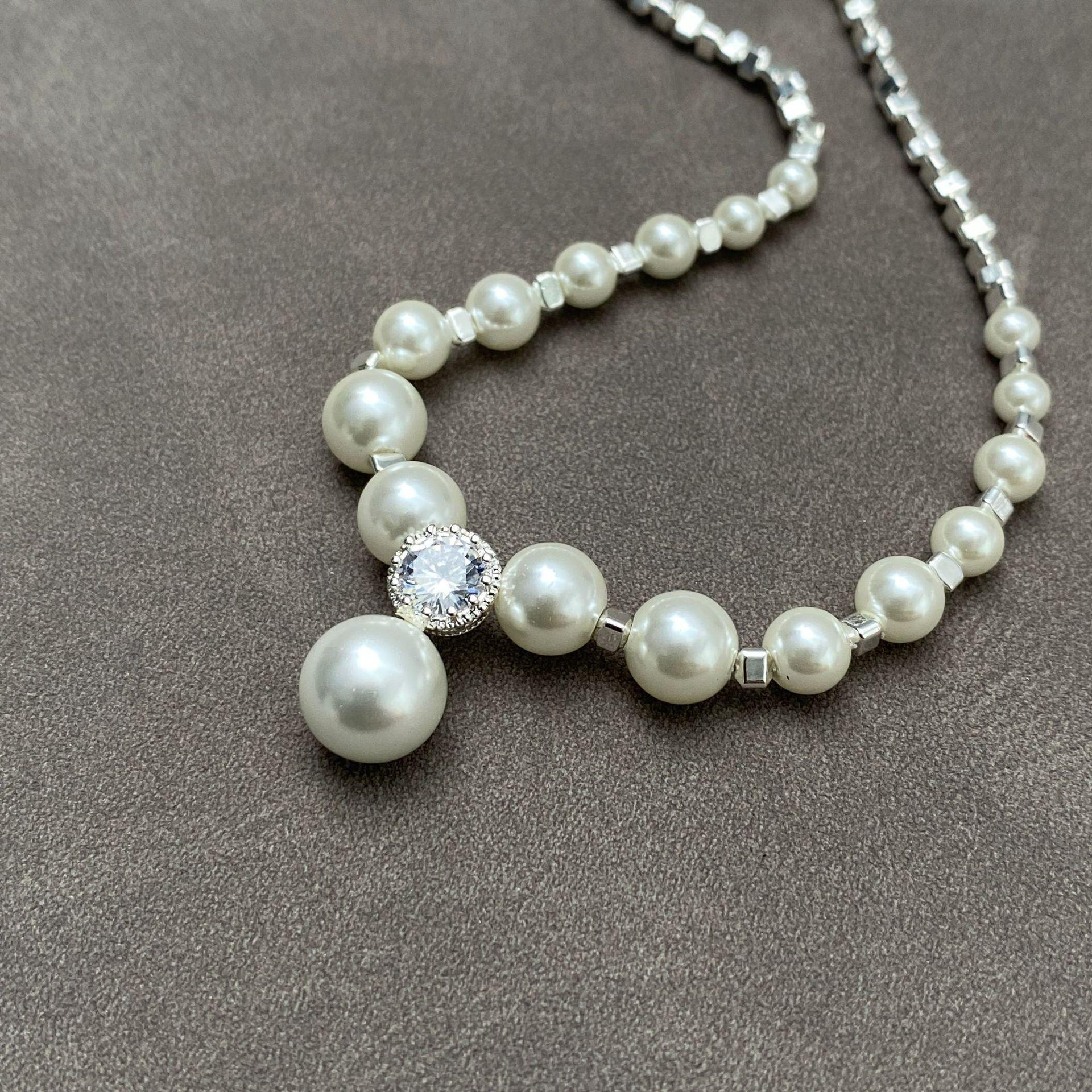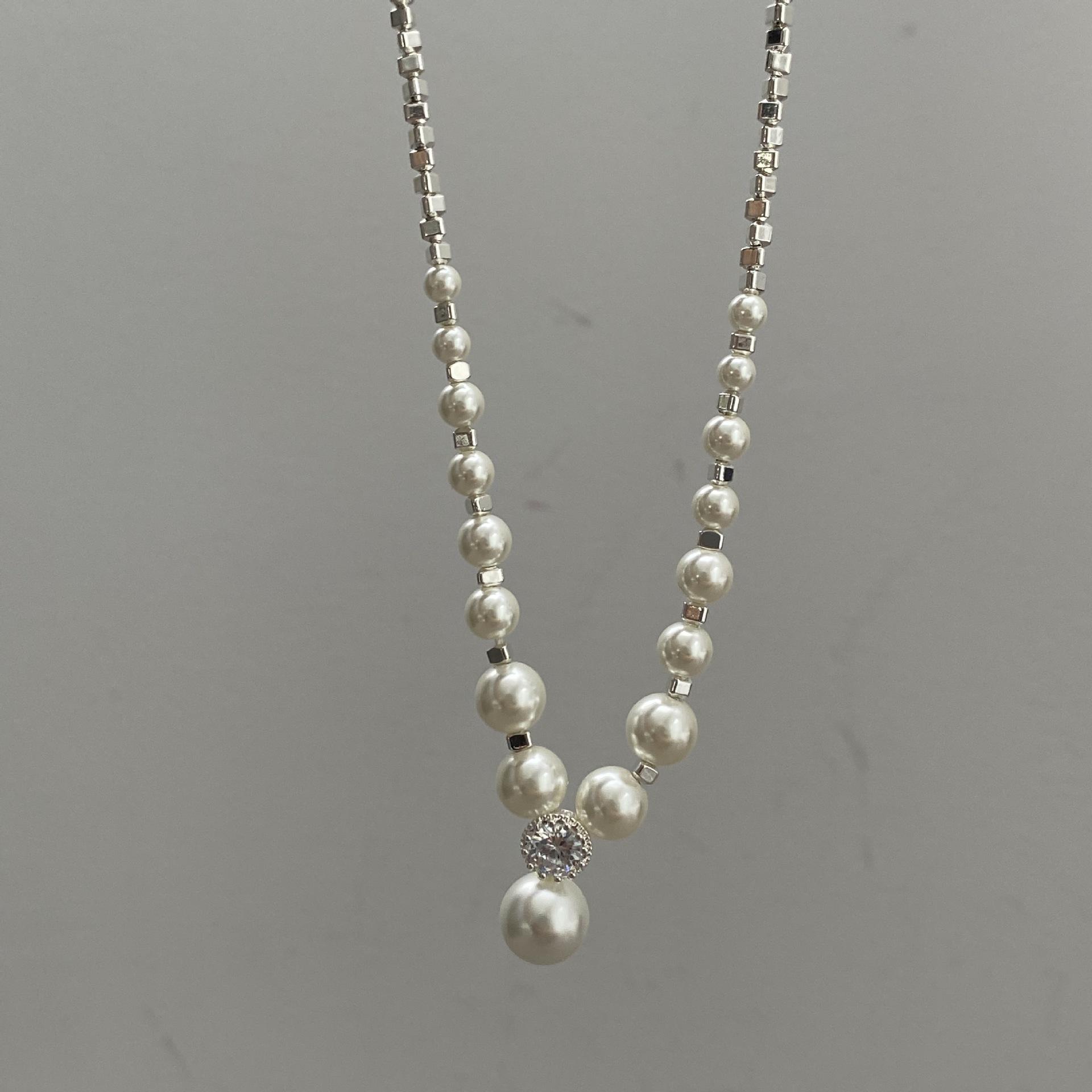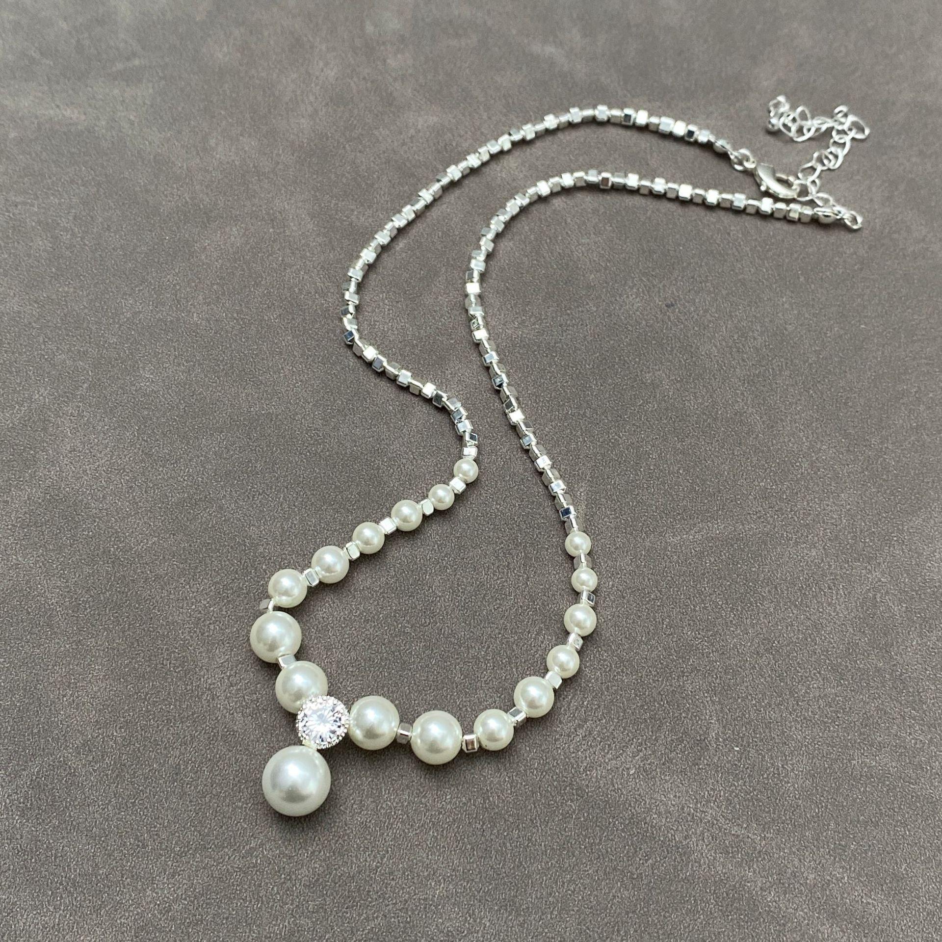 Collar de perlas de plata rotas de verano, elegante, sencillo, combinable, estilo nicho, diseño de circonita, cadena de clavícula.