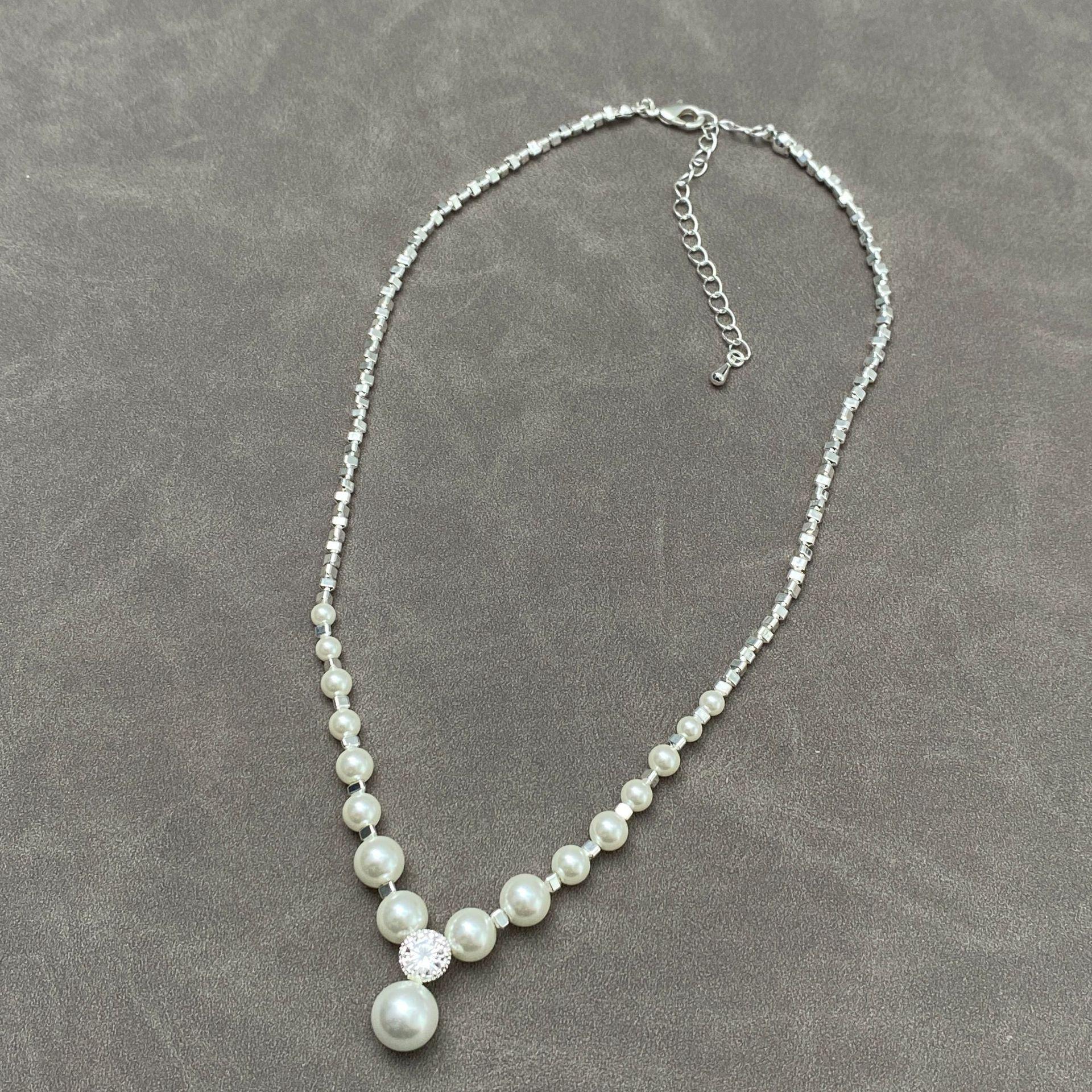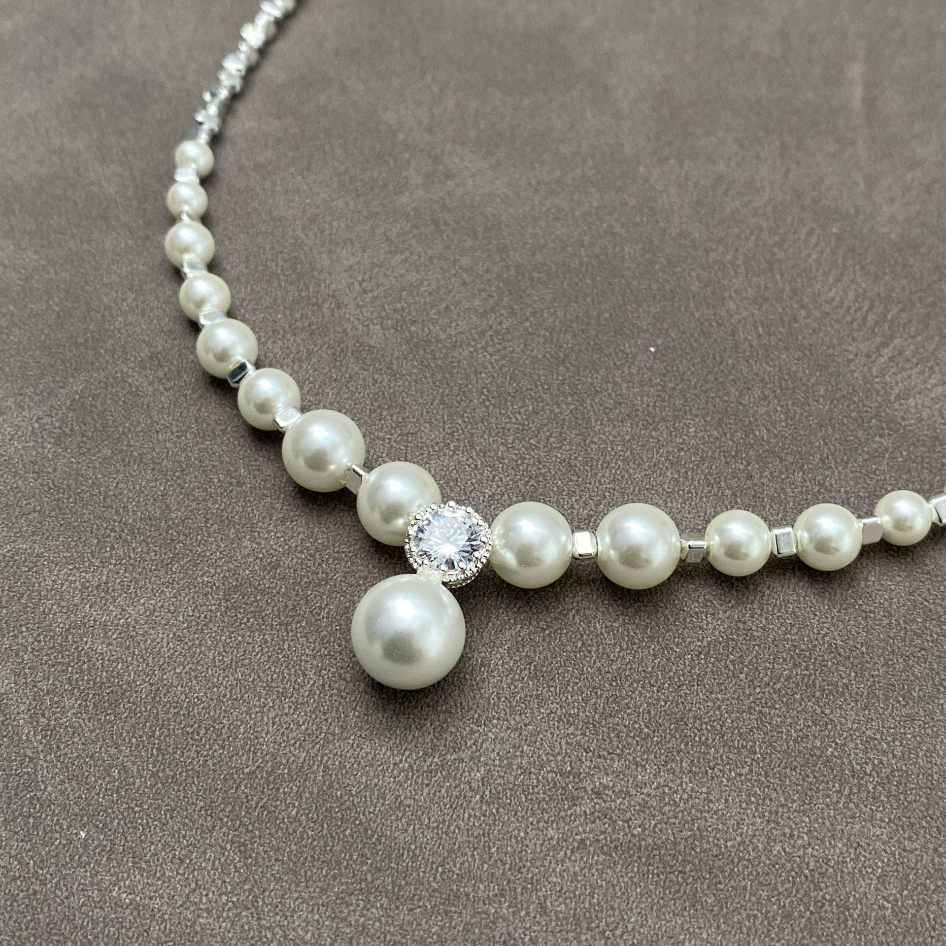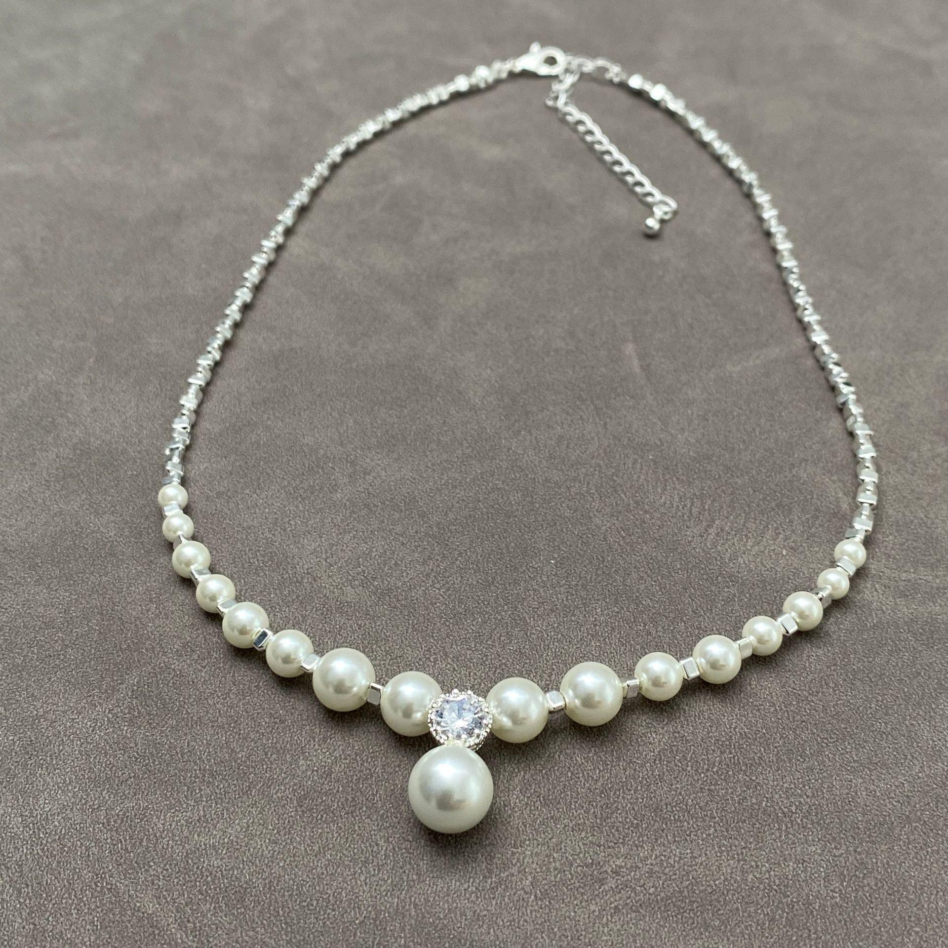 Collar de perlas de plata rotas de verano, elegante, sencillo, combinable, estilo nicho, diseño de circonita, cadena de clavícula.