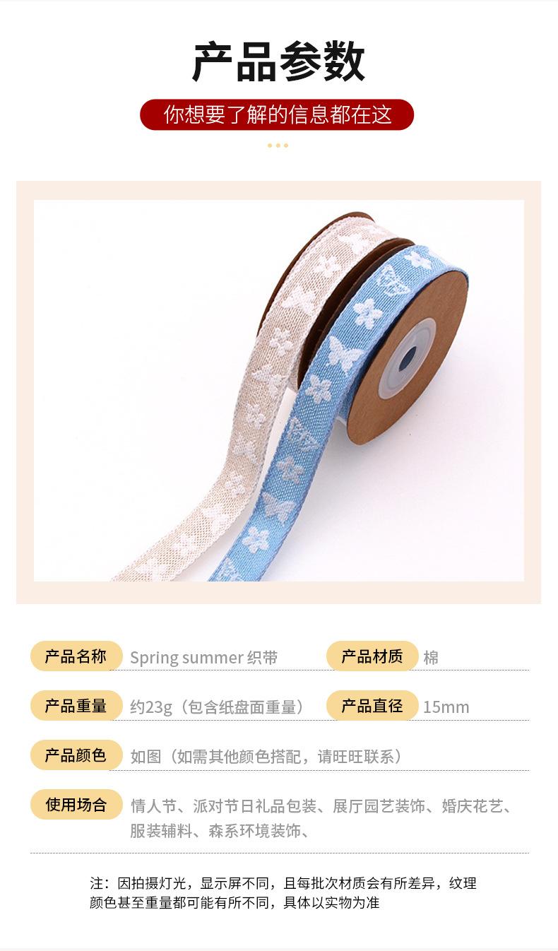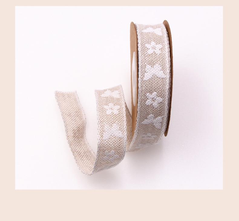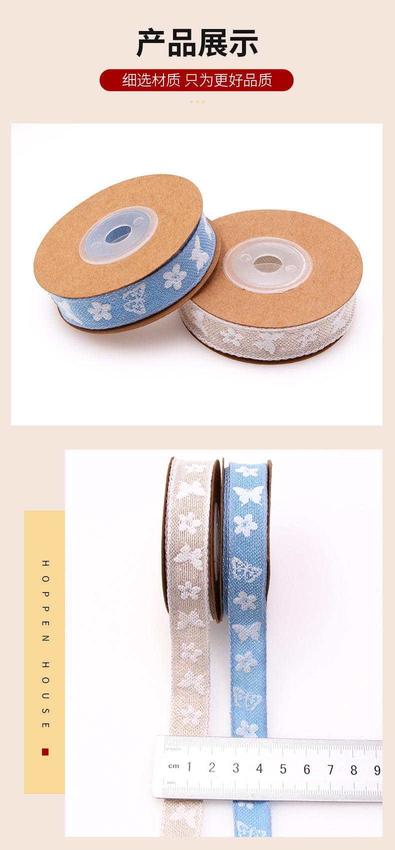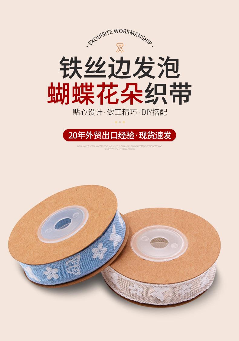 Cinta de algodón de 15 mm * 5 m con borde de alambre, impresión de espuma, mariposa, flor, cinta de flor, decoración de lazo para embalaje de caja de regalo