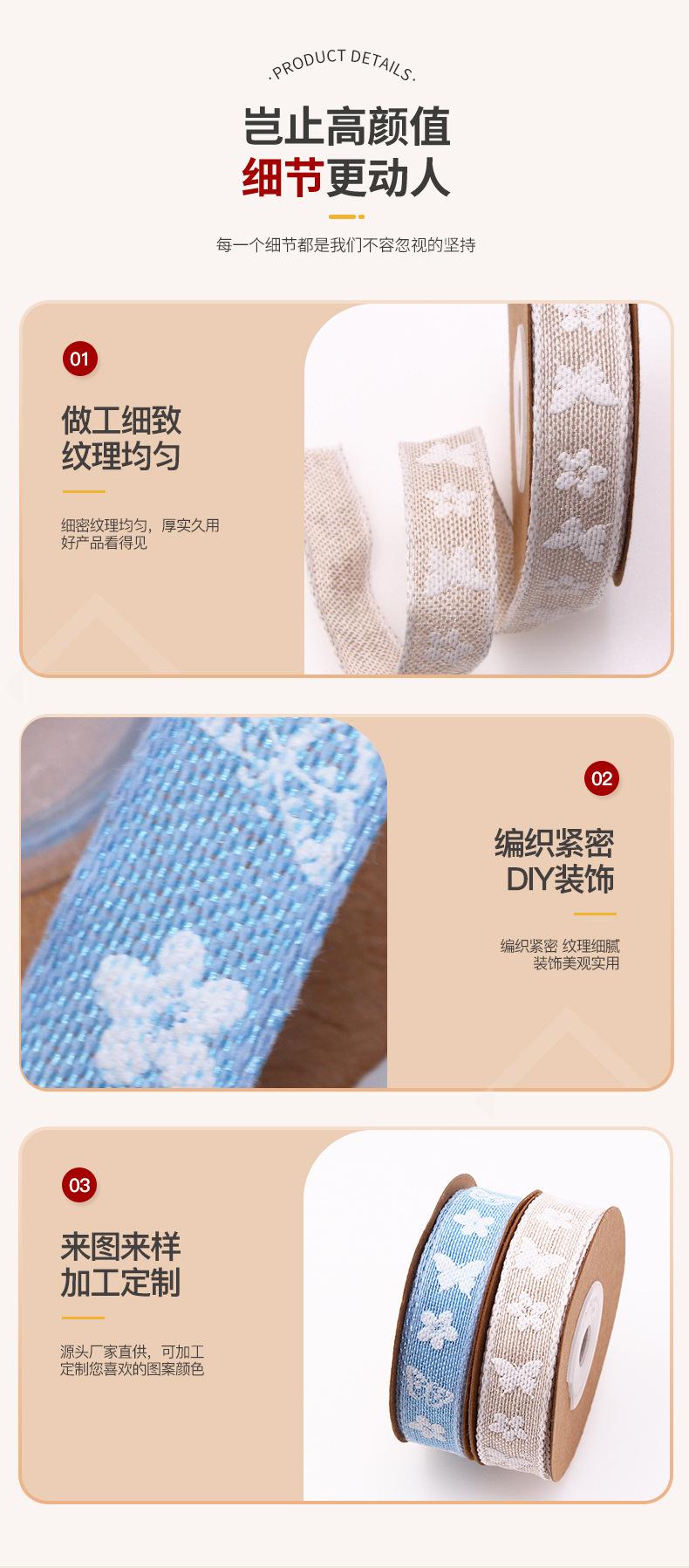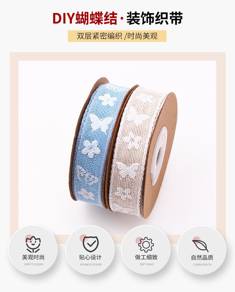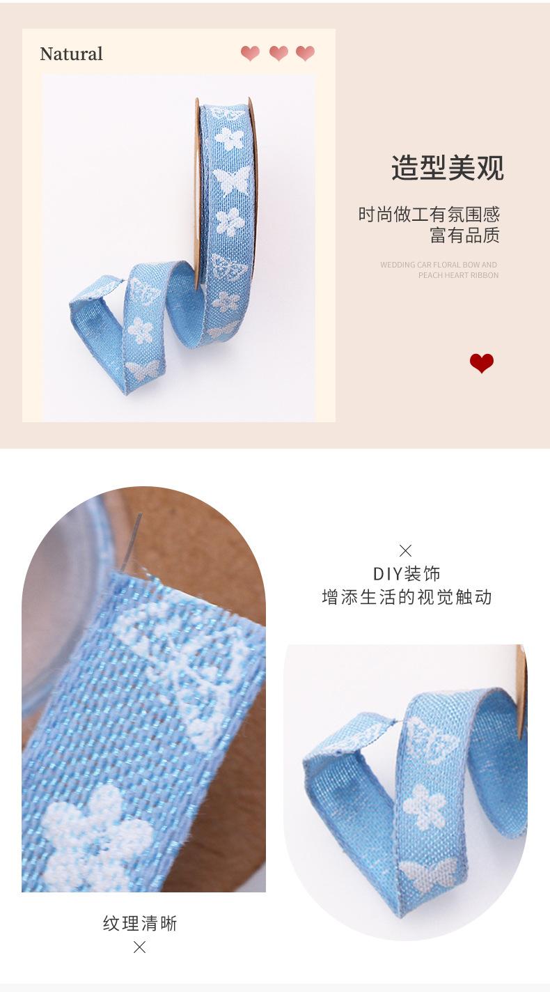 Cinta de algodón de 15 mm * 5 m con borde de alambre, impresión de espuma, mariposa, flor, cinta de flor, decoración de lazo para embalaje de caja de regalo