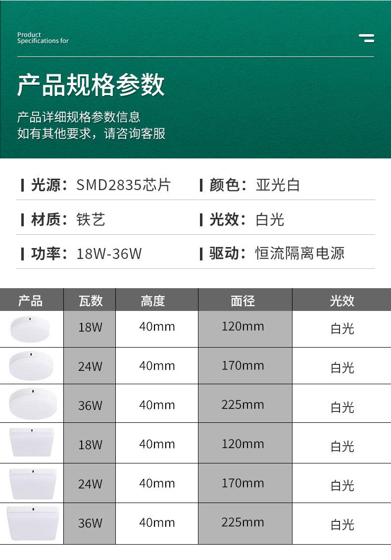 18W round surface diameter 120mm 165-265V, 24W round surface diameter 170mm 165-265V, 36W round surface diamet...