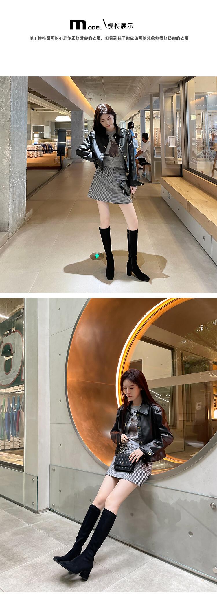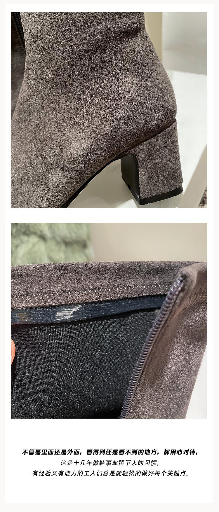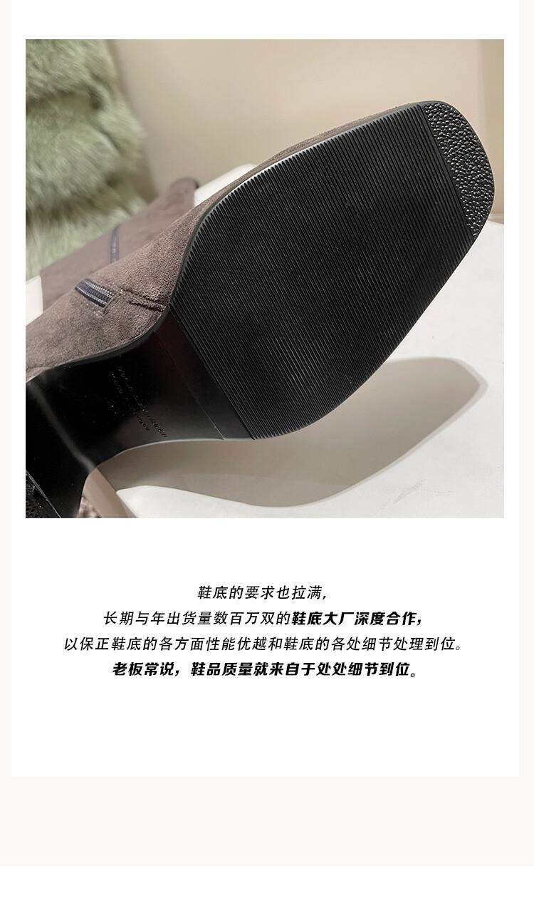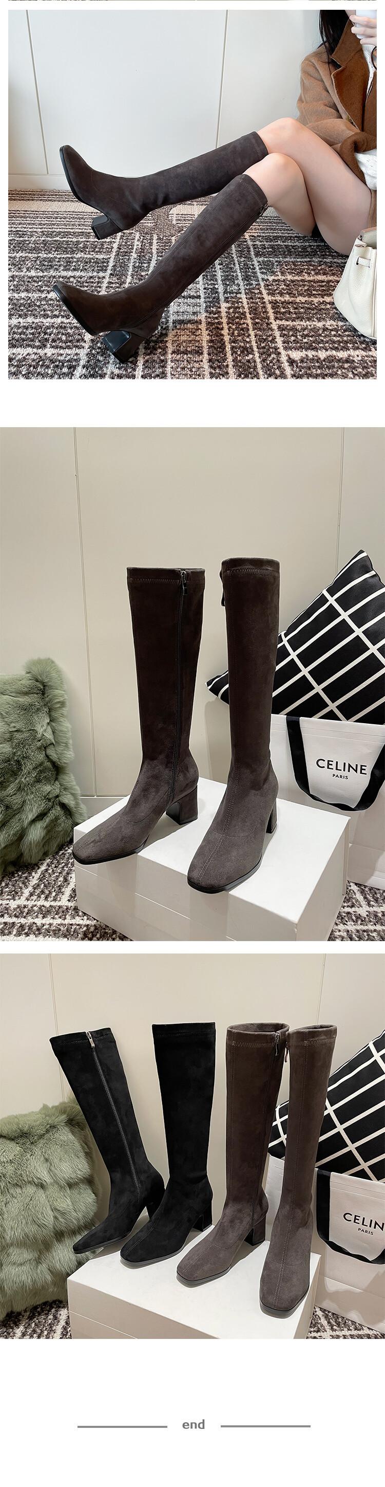 Botas elásticas para mujer, botas largas de ante con punta cuadrada pequeña y tacón alto, botas vintage de tacón grueso y ajustadas.