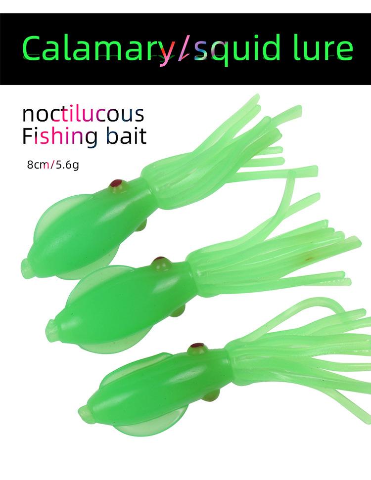 Cebo de calamar luminoso Luya, cebo blando de pulpo de simulación biónica de 8 cm, paquete de 3, para pesca en barco, pesca en el mar, cebo falso Luya Bait
