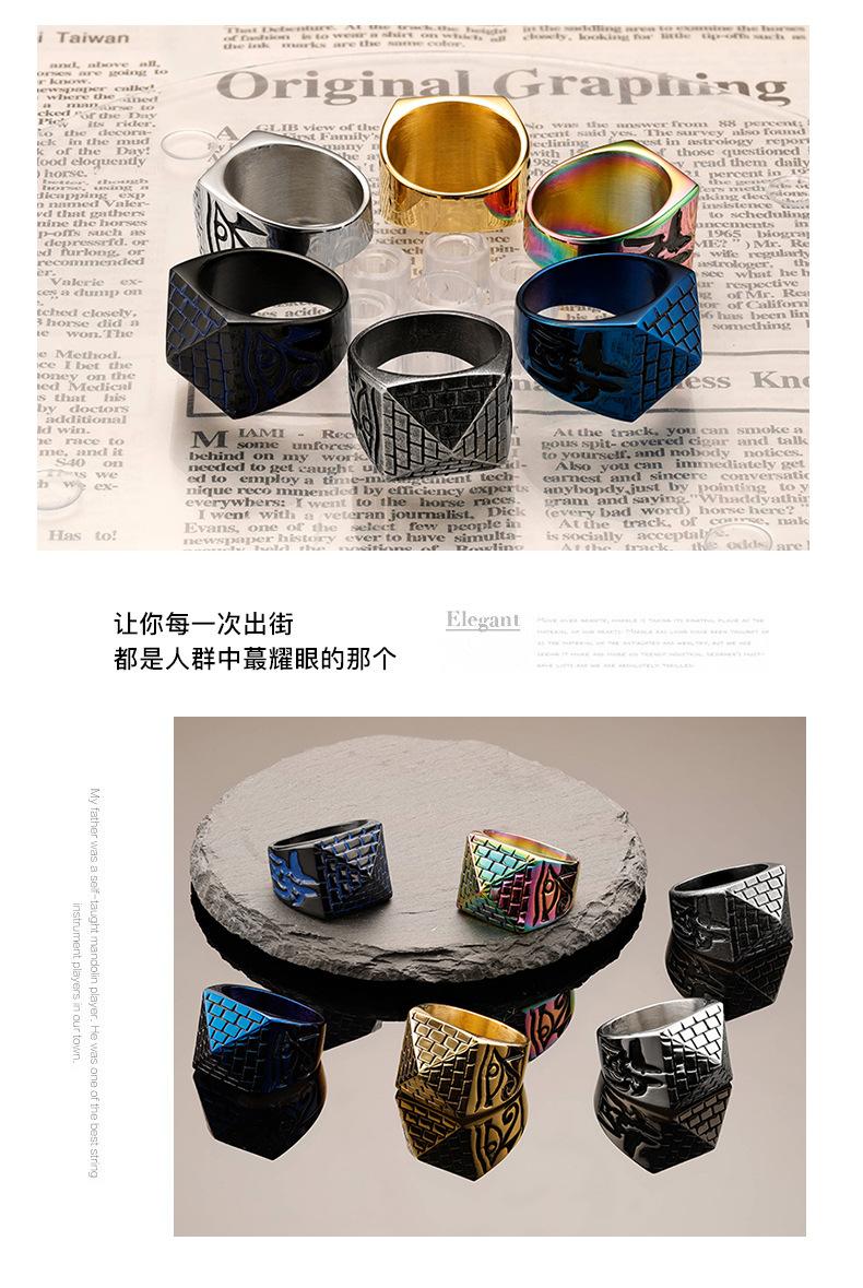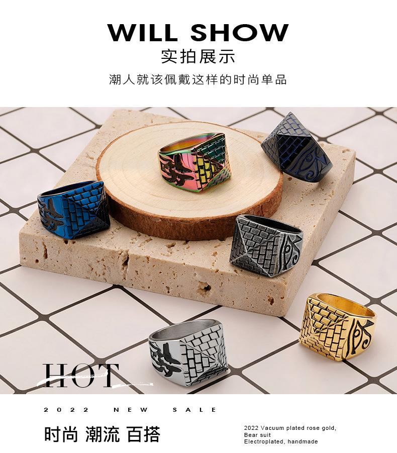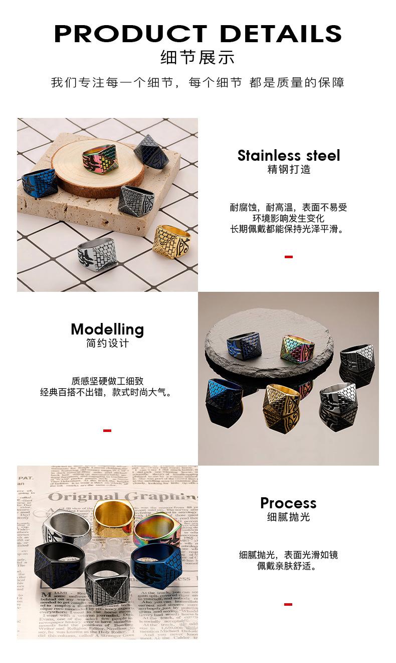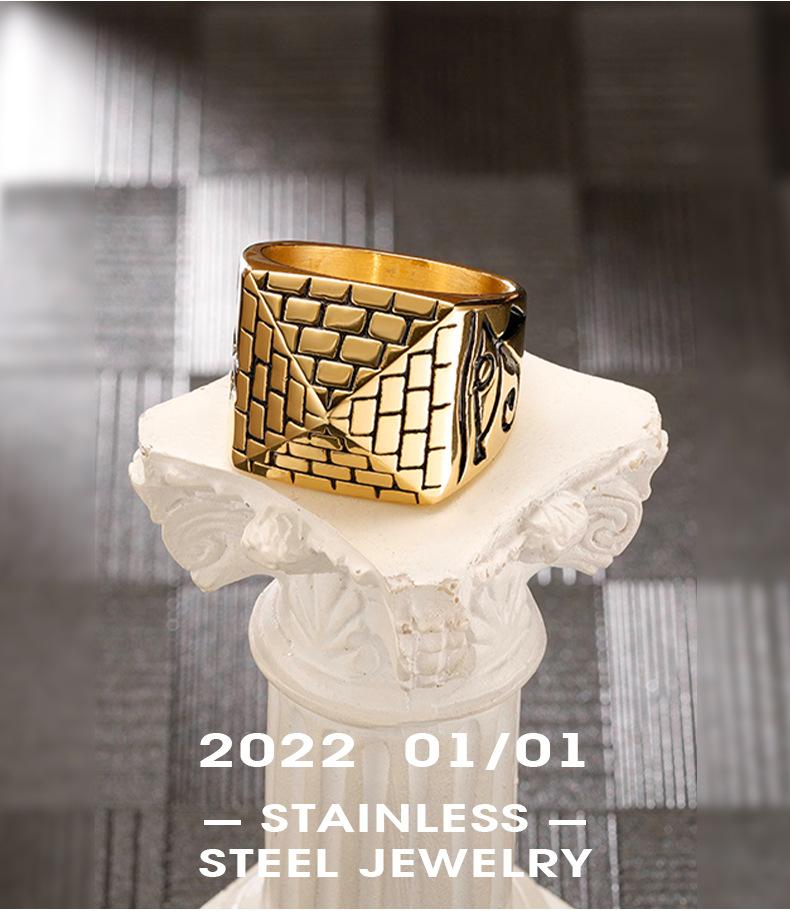 Anillo de pirámide egipcia diseño creativo único multicolor temperamento exquisito anillo de acero inoxidable fábrica venta al por mayor joyería