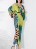 Elegante vestido plisado de moda para mujer, nuevo vestido largo holgado de talla grande con cuello en V y mangas murciélago de alta gama europea y americana.