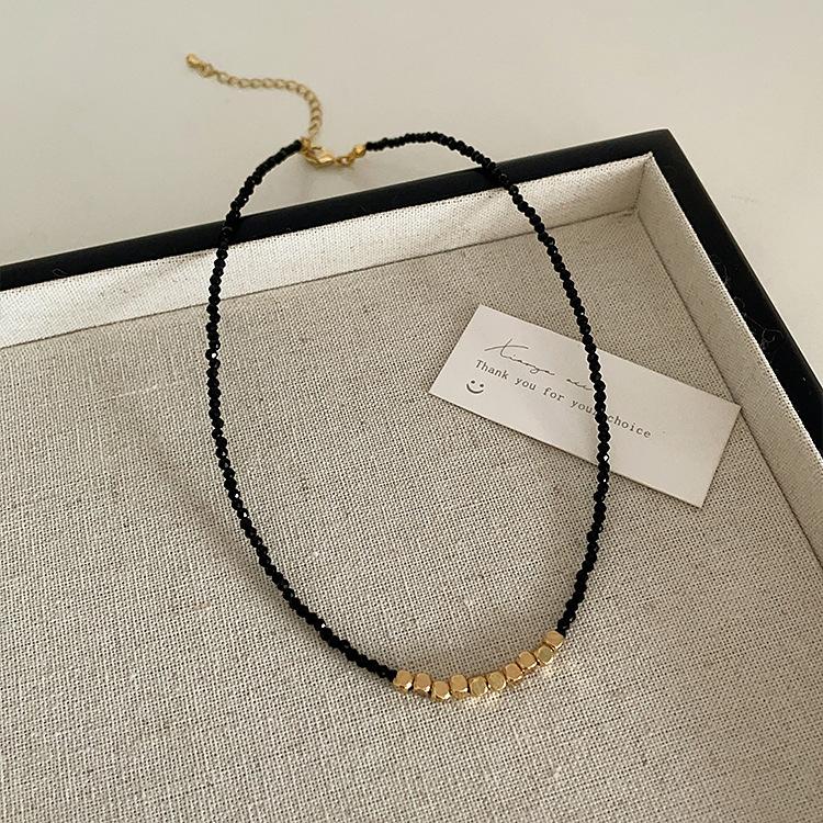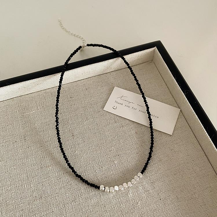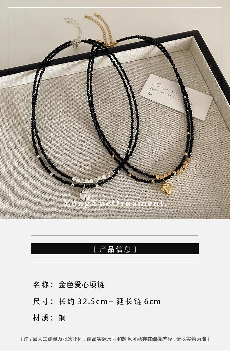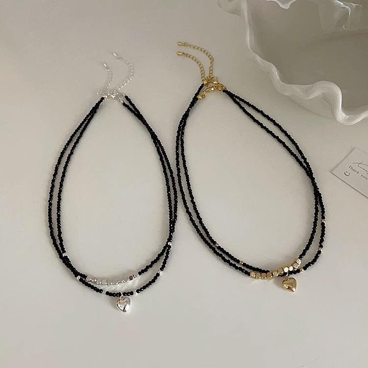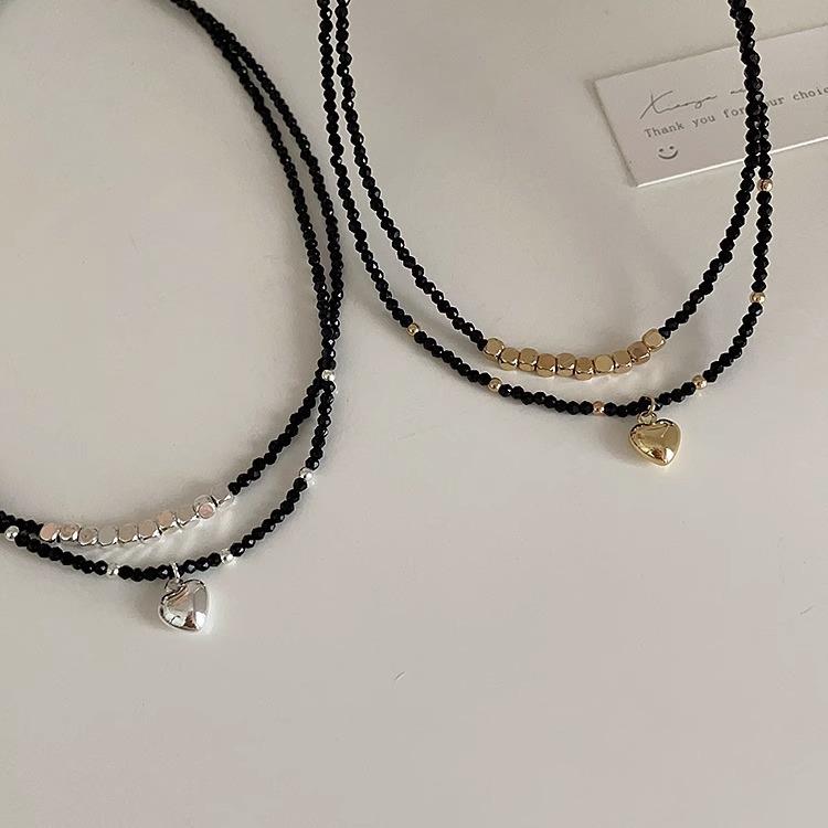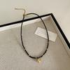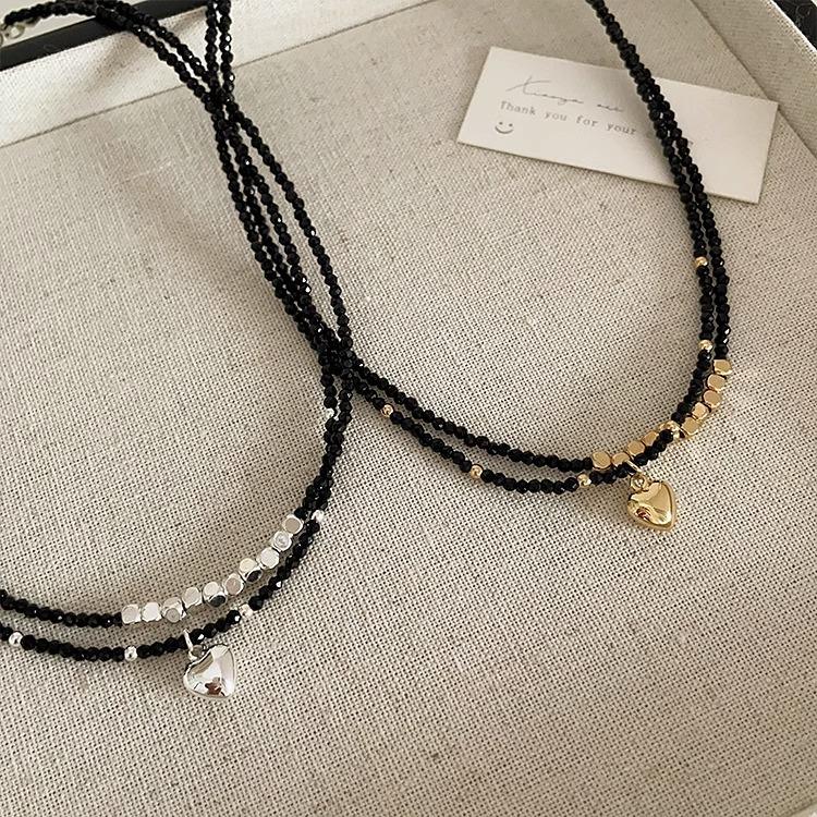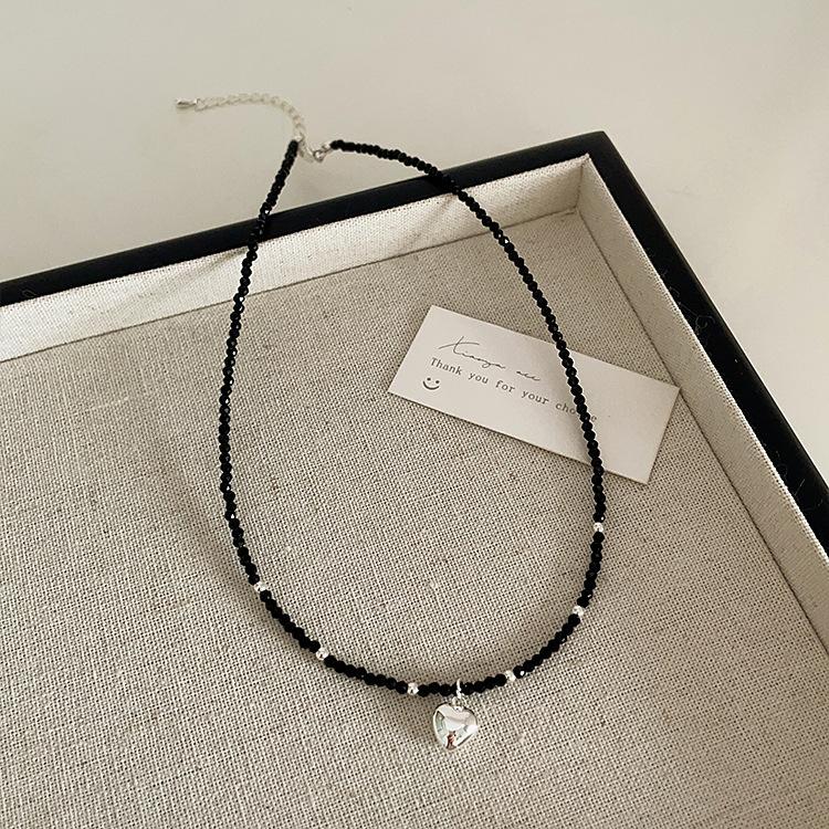 Collar de amor de metal y cristal negro para mujer, diseño de nicho, personalidad retro, cadena sencilla y combinable.