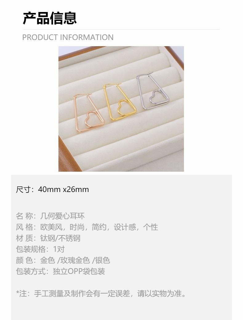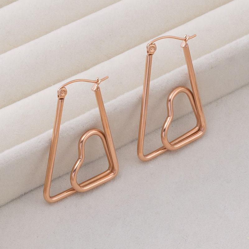 Venta caliente transfronteriza, pendientes de amor geométricos de línea simple con personalidad europea y americana, pendientes grandes de corazón de melocotón con temperamento de nicho para mujer, joyería