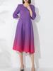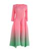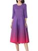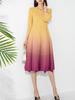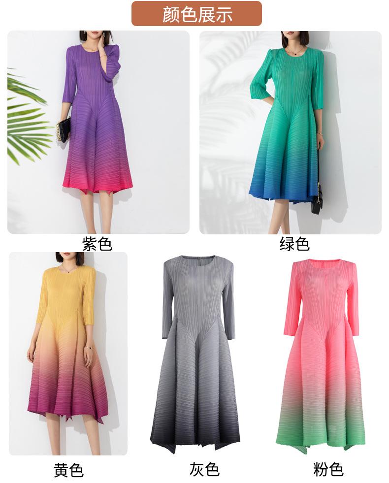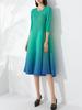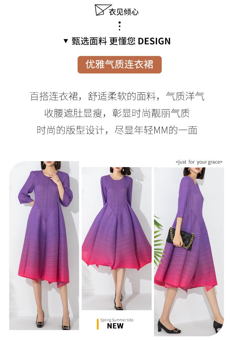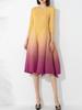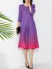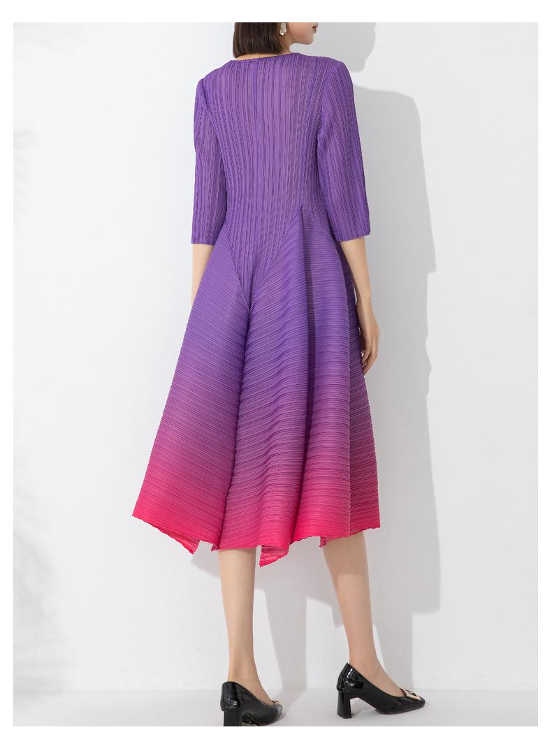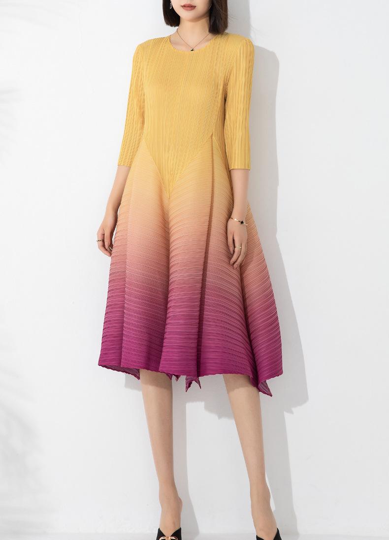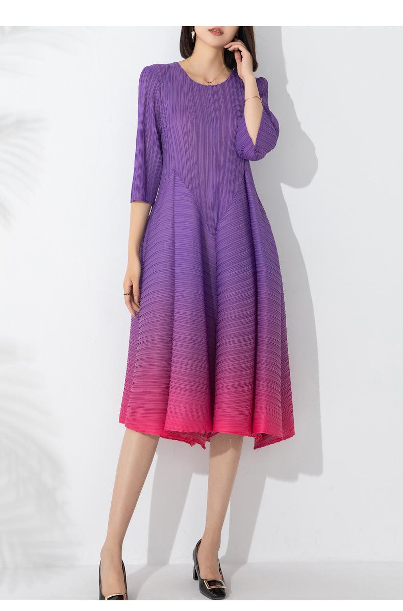 Vestido holgado de talla grande con pliegues estilo europeo y americano, nuevo, de alta gama, elegante, con degradado de color, cuello redondo, mangas de siete puntos y estampado floral.