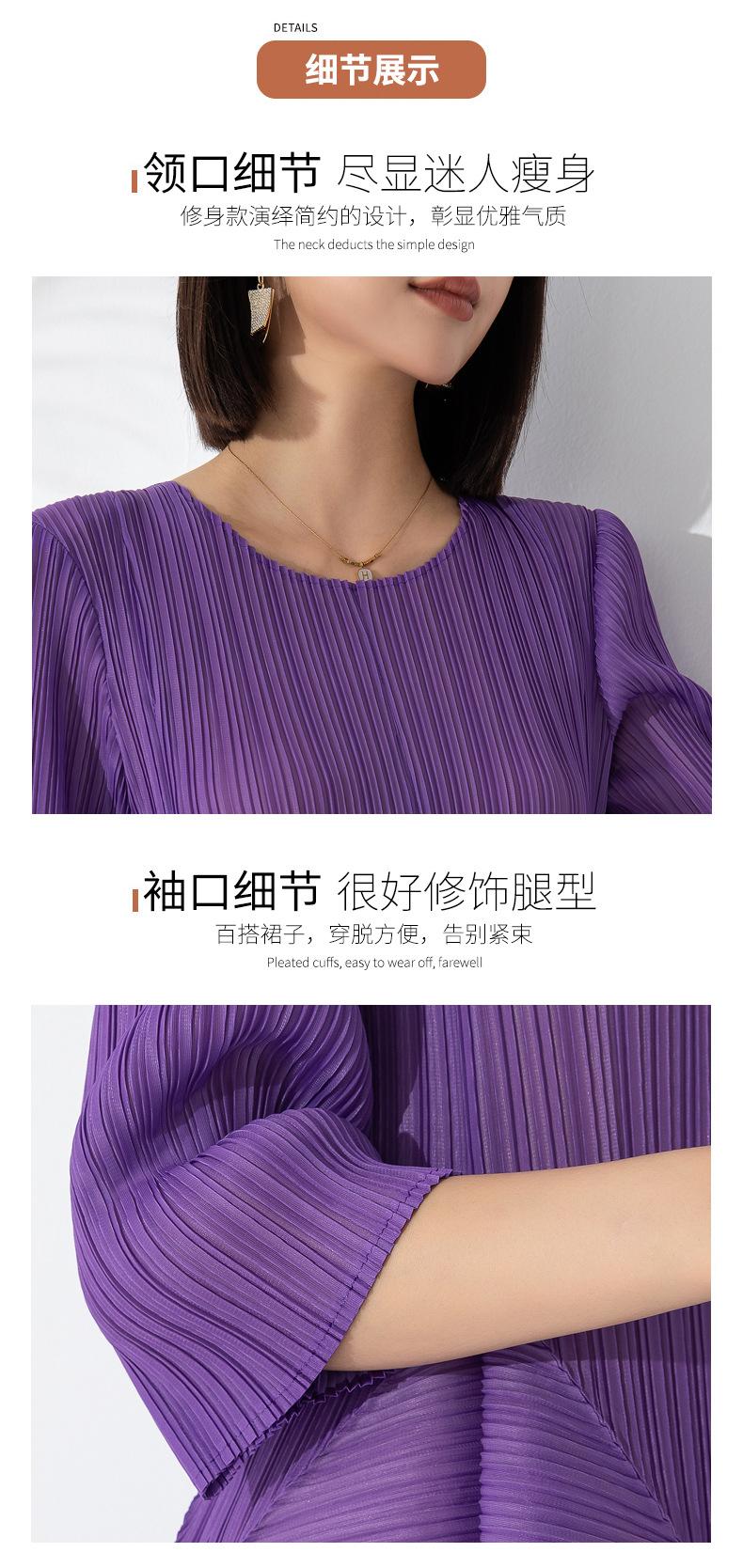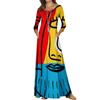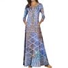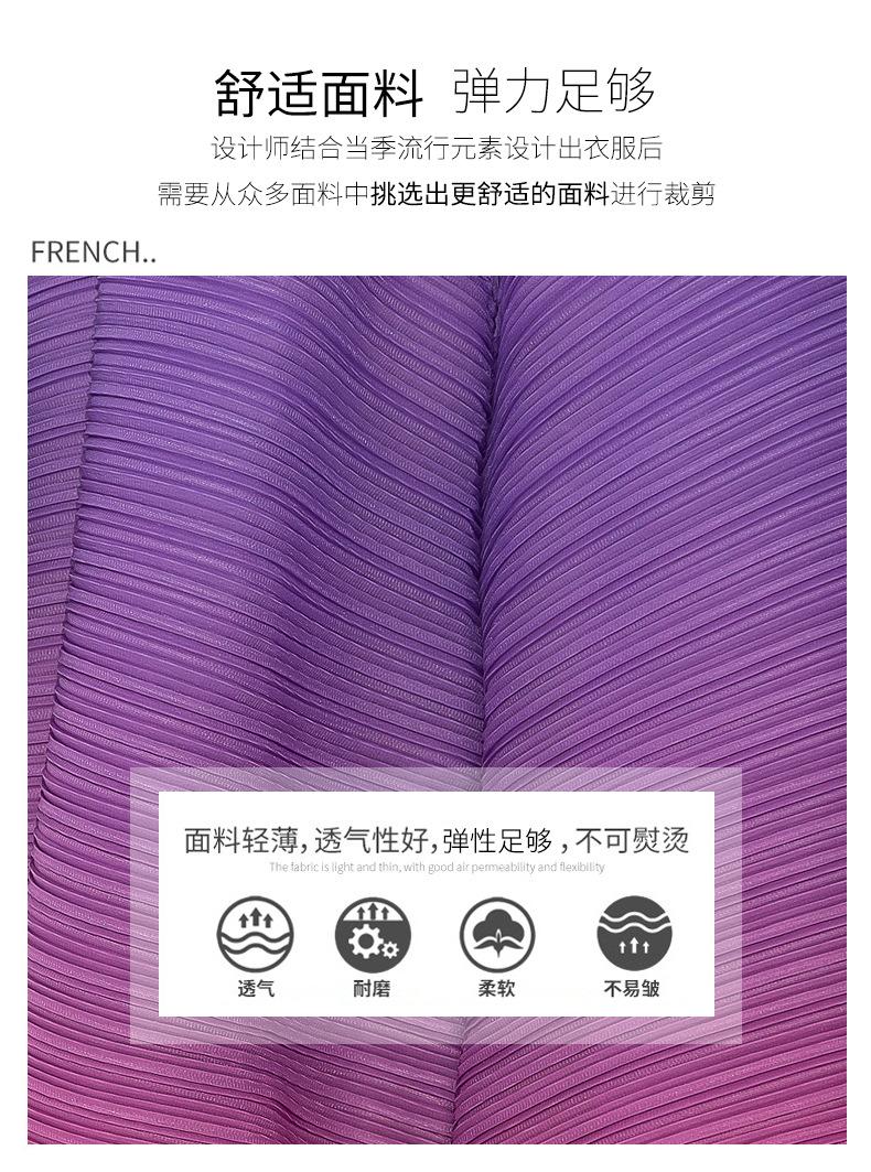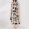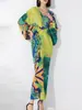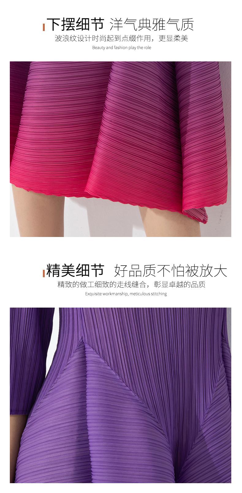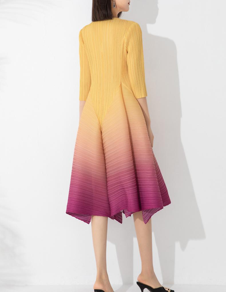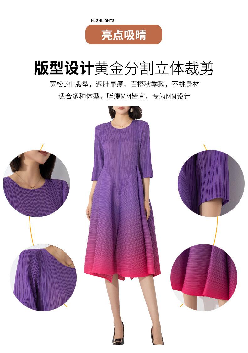 Vestido holgado de talla grande con pliegues estilo europeo y americano, nuevo, de alta gama, elegante, con degradado de color, cuello redondo, mangas de siete puntos y estampado floral.