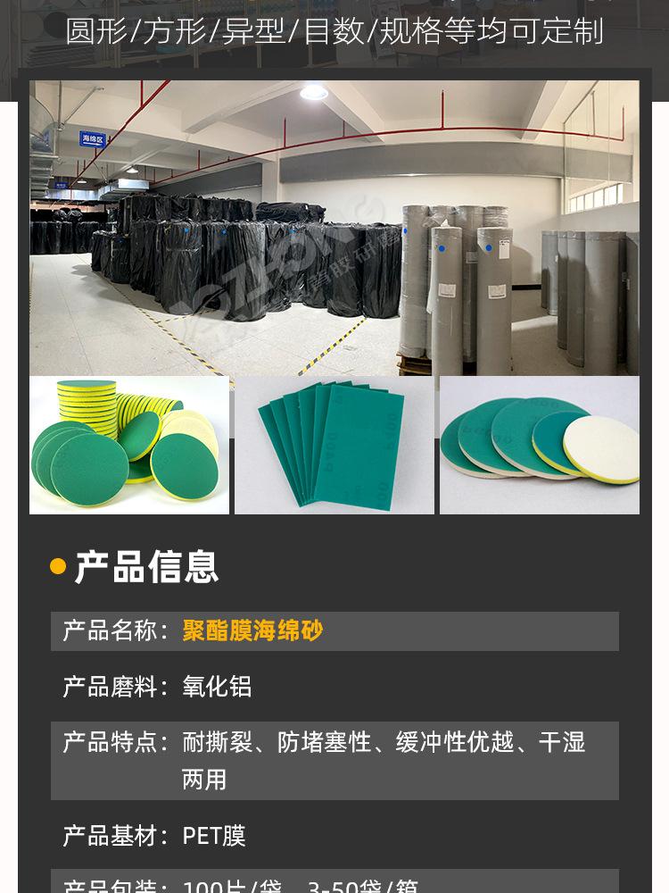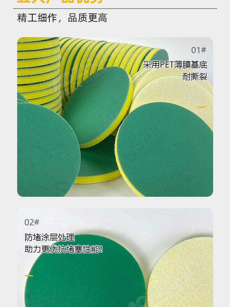 Lija de Película de Poliéster Personalizada Esponja Verde para Pulido de Superficie de Pintura de Automóvil Flocado Resistente al Desgaste Ultrafino