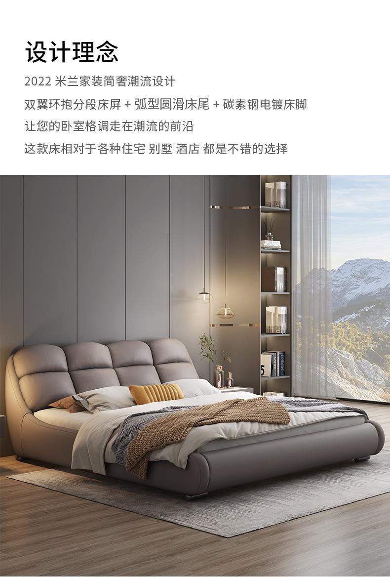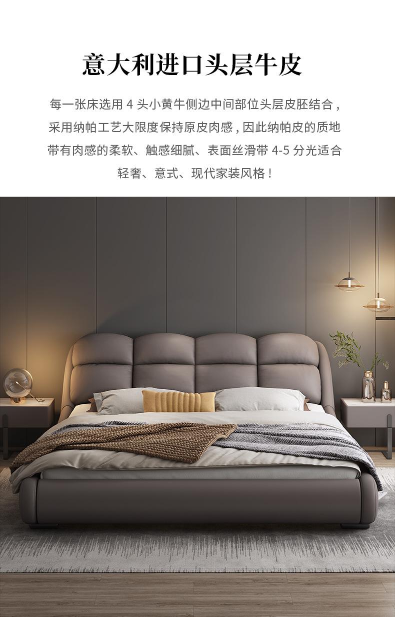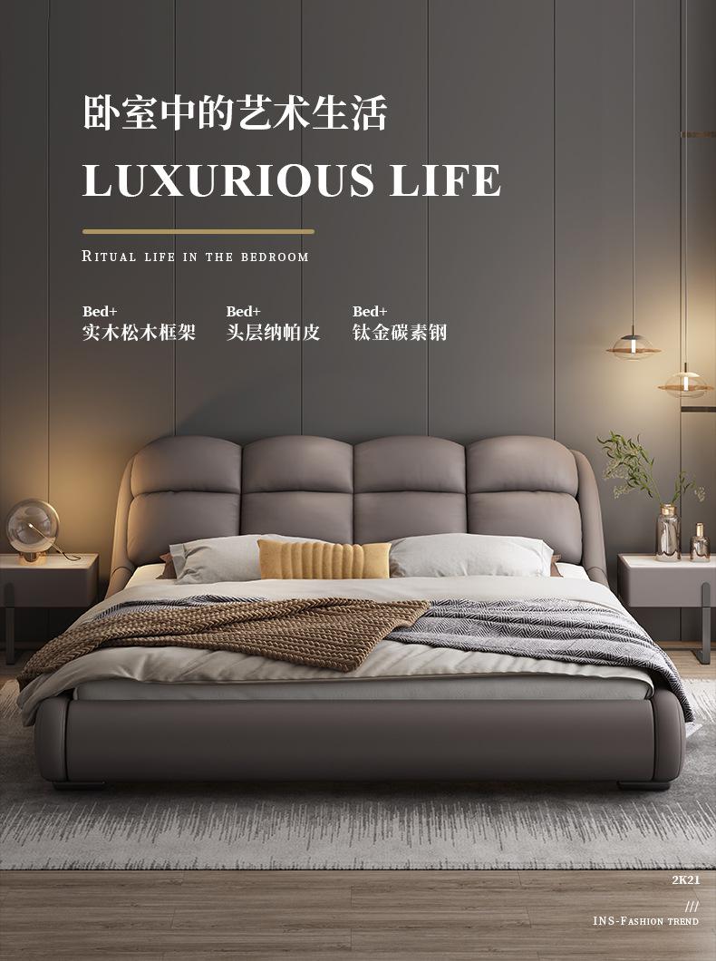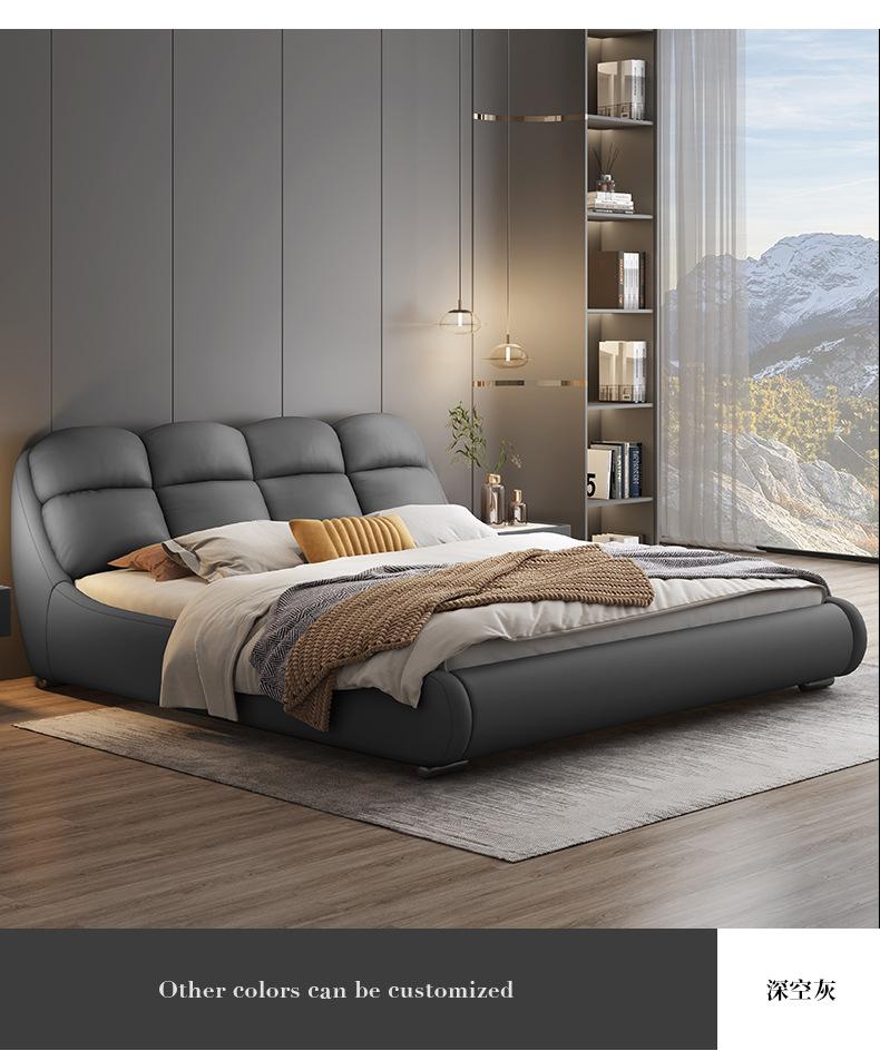 Cama de Cuero Minimalista de Lujo Italiano 1.8m Moderna Simple Dormitorio Principal Cama Doble Cama Elegante con Cubierta Suave Arte en Cuero