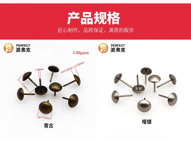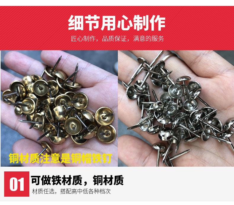 Fábrica venta al por mayor redondo dorado brillante 11mm chincheta clavo de tambor plateado cobre antiguo muebles sofá clavo de cobre clavo de burbuja