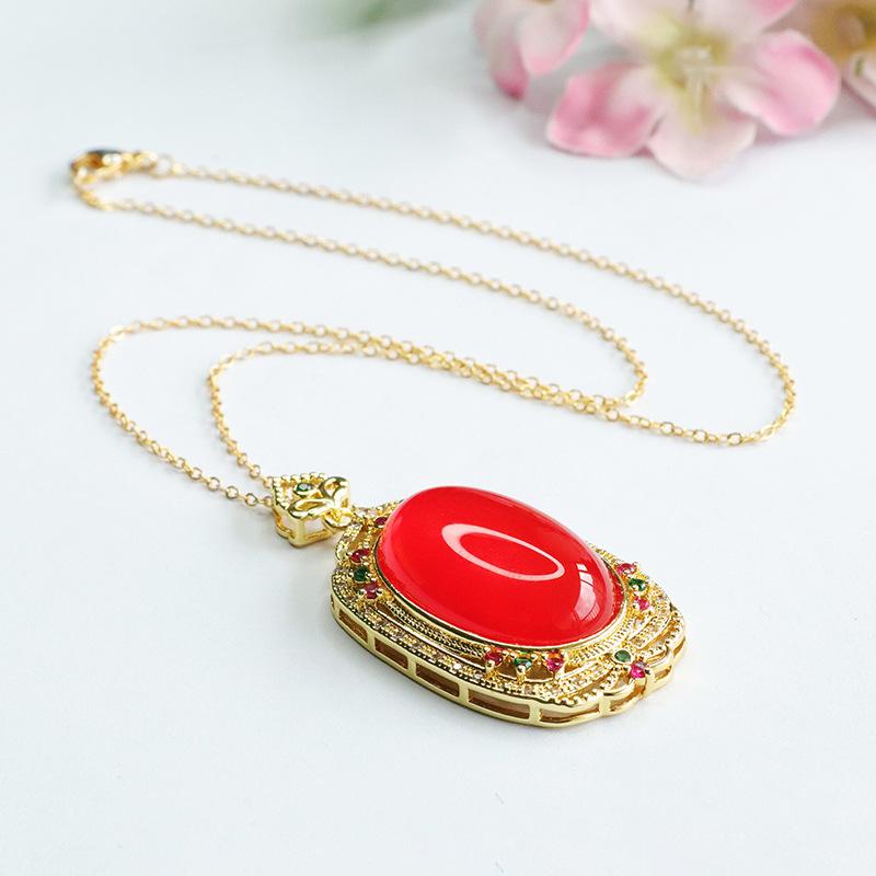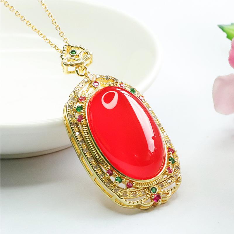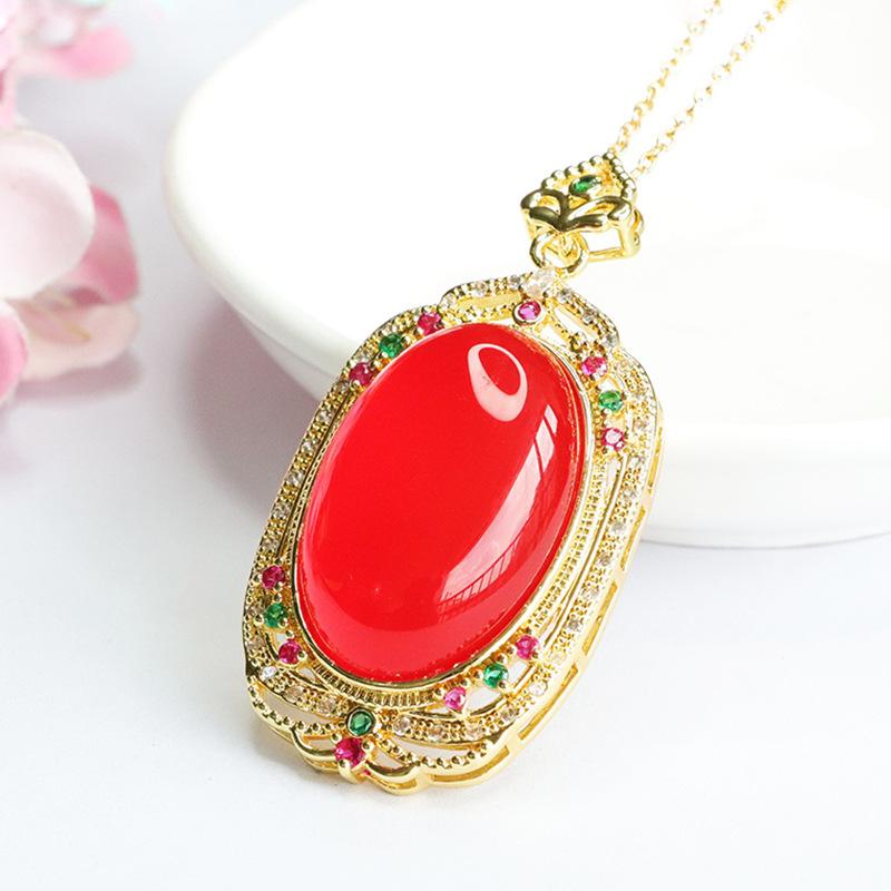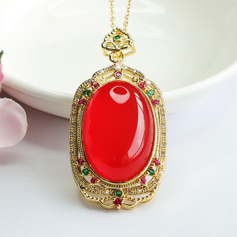 Colgante de ágata roja Yuyu, collar de calcedonia roja sangre de paloma para mujer, estilo retro, venta al por mayor, MN3080211