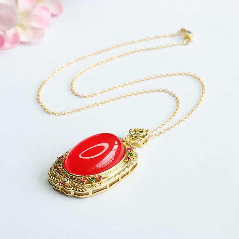 Red agate pigeon egg retro pendant (without chain) mn3080211